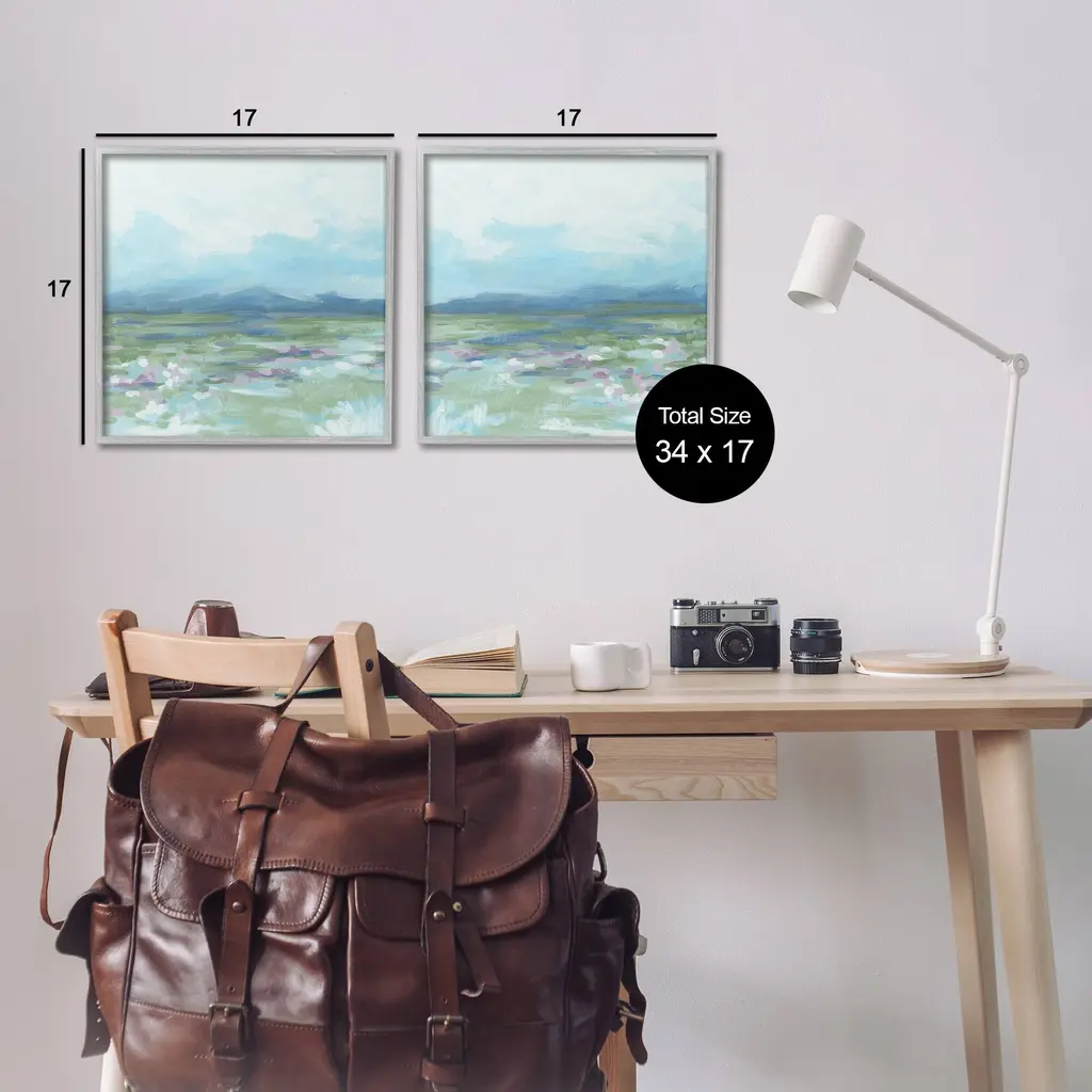 Fill any space in your home or office with our Framed Wall Art Sets. Our framed artwork is securely mounted into a 1.5-inch thick wood grain frame and ready to hang. Frames are available in three alluring styles: black, gray farmhouse and white. Stupell Wall Art is made in the USA.Features: Dimensions: 2 Piece Set, Each Panel is 12 x 1.5 x 12 FramedTwo Piece Framed Giclee Sets are available as 12"x12", 17"x17" or 24"x24" Panels. All Framed giclee Products have a 1.5" Depth.Wall Art is Ready to Hang with Hardware Free Hanging. No installation required. For Easy Set Up Lean or Layer Artwork on Shelf or Against Wall.Curated Wall Art Sets make it easy for you complete the theme for any room. Our giclée prints are carefully mounted on a durable MDF backing, and then perfectly finished in a 1.5 inch thick woodgrain frame. Mounted frame colors include black, gray farmhouse and white. Made In USA.Artwork Relates To: Painting, Nature, Flower, Plant, Landscape, Meadow, Abstract, Modern, Field, CottageDesign by June Erica Vess