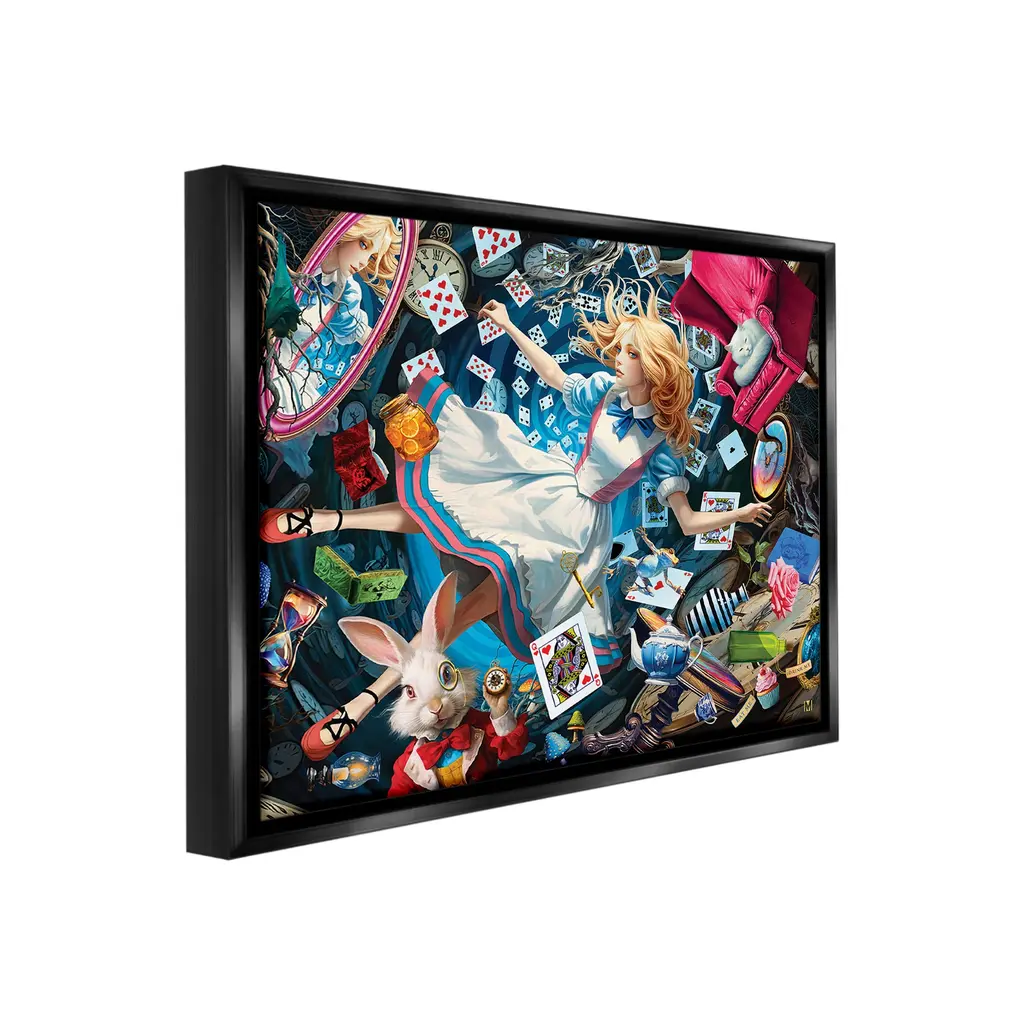 Elevate your home or office to the next level with Stupell Framed Floating Canvas Wall Art. Our premium hand-stretched canvas is mounted securely into a sturdy lightweight frame. The museum-style gap between the wrapped canvas and the box frame gives the illusion of floating artwork. Stupell Wall Art is made in the USA.Features: Dimensions: 21 x 1.7 x 17 Frame, 20 x 1.5 x 16 Canvas ArtFloating Frame Canvas Products are available in sizes 21"x17" and 31"x25". All Floating Frame Canvas Products have a 1.7" Depth.Wall Art is Ready to Hang with Hardware Free Hanging. No Installation required. For Easy Set Up Lean or Layer Artwork on Shelf or Against Wall. Artwork is Permently Fixed into the Frame.Our elevated 1.7" Thick Floating Frame is the perfect complement to our canvas style Wall Art. We use only the highest quality inks in house with industry leading printing solutions. Canvas is hand stretched over a durable wood foundation and then mounted securly into a Modern Box Frame. Made in the USA.Artwork Relates To: Book, Story, Girl, Rabbit, Cat, Cards, Game, TeacupDesign by Michael David Ward