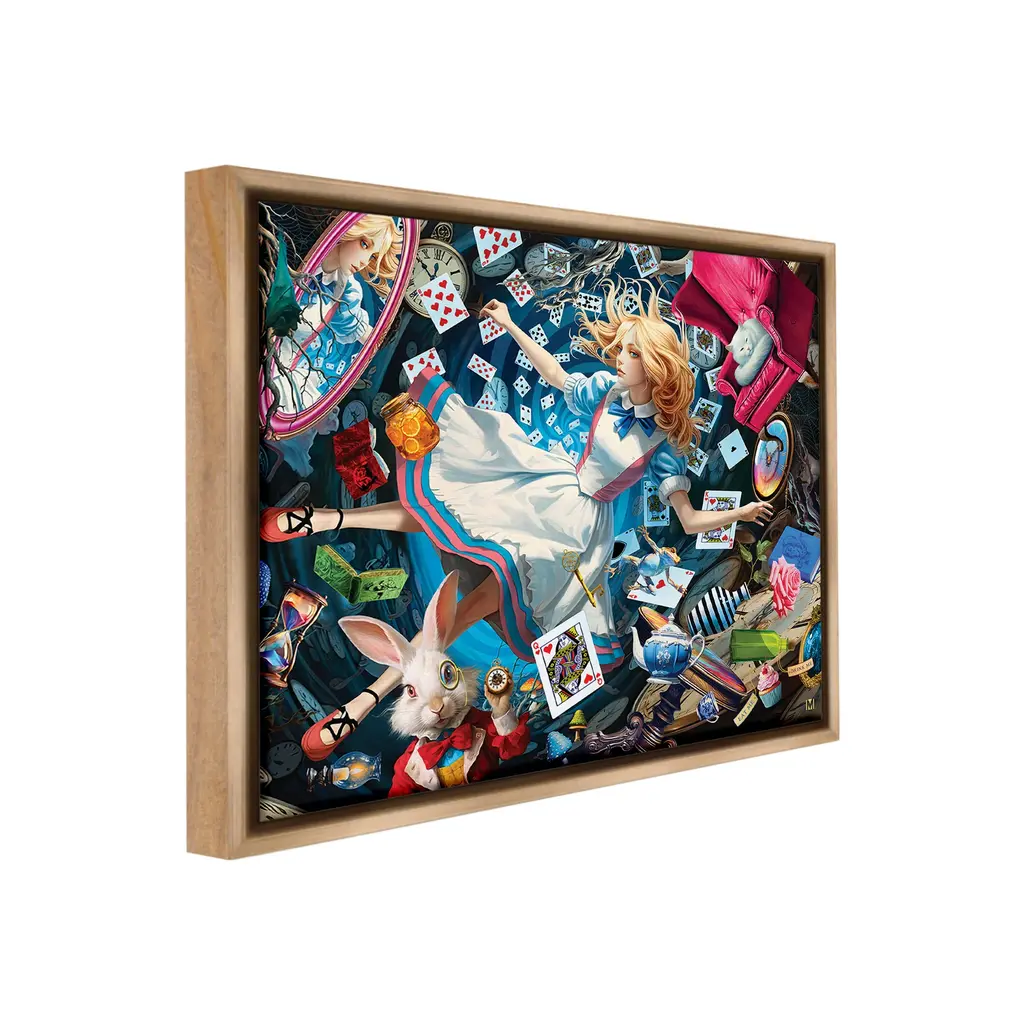 Elevate your home or office to the next level with Stupell Framed Floating Canvas Wall Art. Our premium hand-stretched canvas is mounted securely into a sturdy lightweight frame. The museum-style gap between the wrapped canvas and the box frame gives the illusion of floating artwork. Stupell Wall Art is made in the USA.Features: Dimensions: 21 x 1.7 x 17 Frame, 20 x 1.5 x 16 Canvas ArtFloating Frame Canvas Products are available in sizes 21"x17" and 31"x25". All Floating Frame Canvas Products have a 1.7" Depth.Wall Art is Ready to Hang with Hardware Free Hanging. No Installation required. For Easy Set Up Lean or Layer Artwork on Shelf or Against Wall. Artwork is Permently Fixed into the Frame.Our elevated 1.7" Thick Floating Frame is the perfect complement to our canvas style Wall Art. We use only the highest quality inks in house with industry leading printing solutions. Canvas is hand stretched over a durable wood foundation and then mounted securly into a Modern Box Frame. Made in the USA.Artwork Relates To: Book, Story, Girl, Rabbit, Cat, Cards, Game, TeacupDesign by Michael David Ward