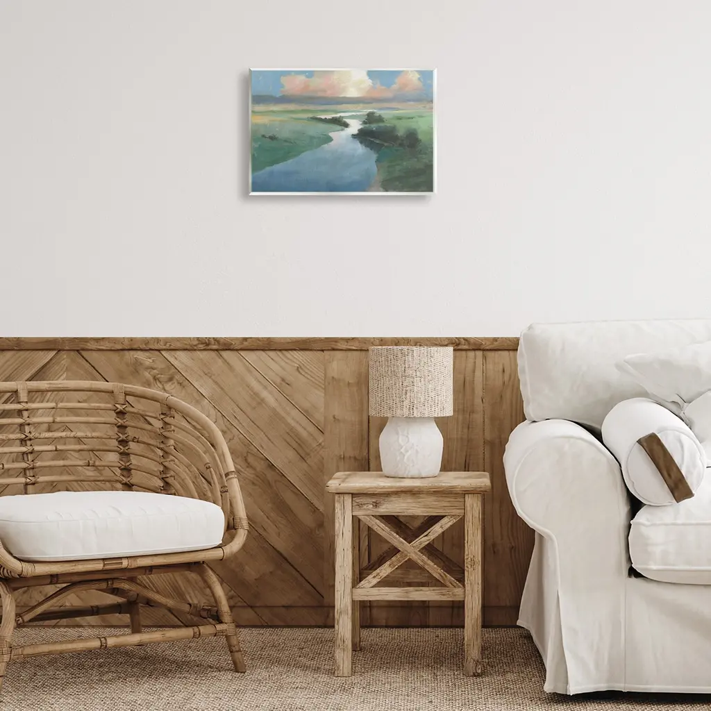Our wall plaques start as high-quality lithograph prints mounted on durable 0.5-inch thick MDF wood. Each piece is hand finished and comes with a fresh layer of white foil on the sides to give it a crisp, clean look. Plaques arrive ready to hang without installation and come with removable plastic corners to keep them from damage in transit. Stupell Wall Art is made in the USA.Features: Dimensions: 15 x 0.5 x 10 InchesWall Plaque Product Sizes Include 15"x10" and 19"x13". All wall plaque products have a 0.5" Depth. Wall Art is Ready to Hang with Hardware Free Hanging. No installation required. For Easy Set Up Lean or Layer Artwork on Shelf or Against Wall.All of our wall plaques start off as high quality lithograph prints that are then mounted on durable 0.5 inch thick MDF wood. Each piece is hand finished and comes with a fresh layer of foil on the sides to give it a crisp clean look. Made In USA.Artwork Relates To: Landscape, Nature, Stream, River, CountryDesign by Wellington Studio