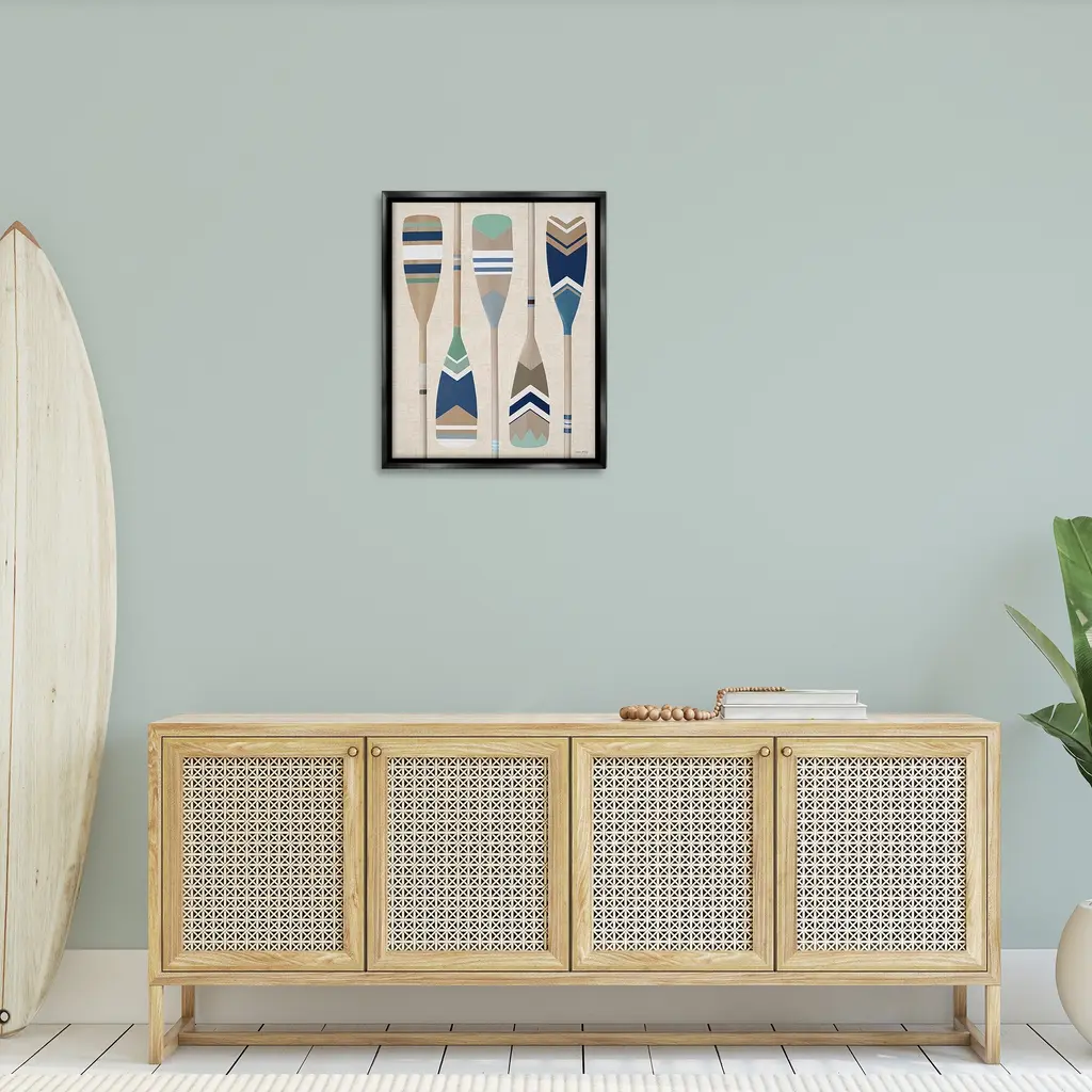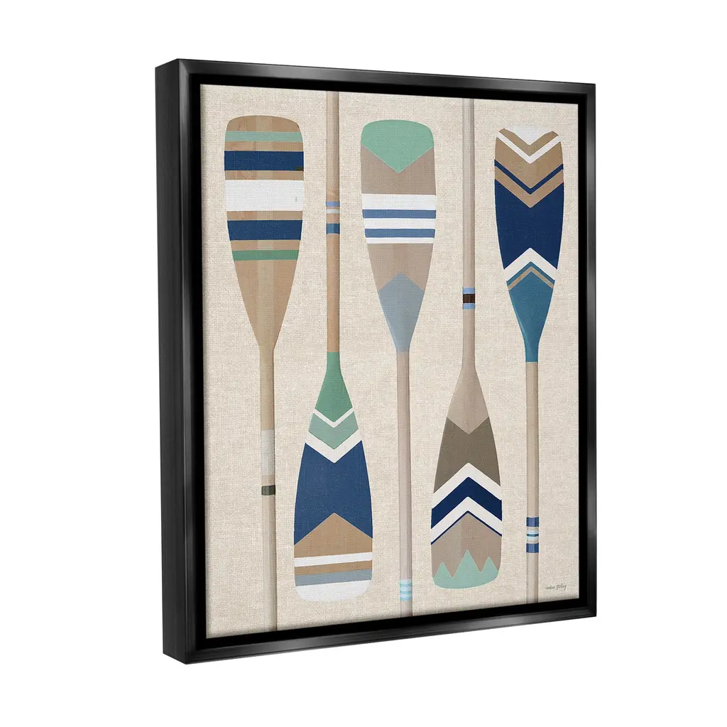 Elevate your home or office to the next level with Stupell Framed Floating Canvas Wall Art. Our premium hand-stretched canvas is mounted securely into a sturdy lightweight frame. The museum-style gap between the wrapped canvas and the box frame gives the illusion of floating artwork. Stupell Wall Art is made in the USA.Features: Dimensions: 17 x 1.7 x 21 Frame, 16 x 1.5 x 20 Canvas ArtFloating Frame Canvas Products are available in sizes 17"x21" and 25"x31". All Floating Frame Canvas Products have a 1.7" Depth.Wall Art is Ready to Hang with Hardware Free Hanging. No Installation required. For Easy Set Up Lean or Layer Artwork on Shelf or Against Wall. Artwork is Permently Fixed into the Frame.Our elevated 1.7" Thick Floating Frame is the perfect complement to our canvas style Wall Art. We use only the highest quality inks in house with industry leading printing solutions. Canvas is hand stretched over a durable wood foundation and then mounted securly into a Modern Box Frame. Made in the USA.Artwork Relates To: Oars, Paddle, Lake House, Rustic, Stripes, Pattern, Boating, Boat, NauticalDesign by Amber Sterling