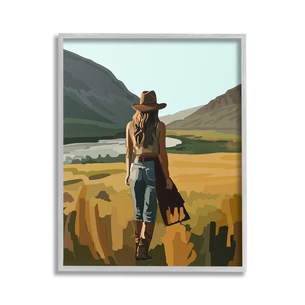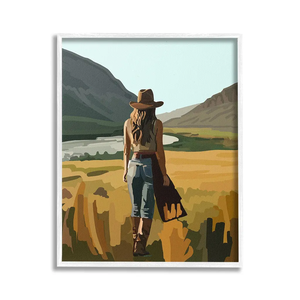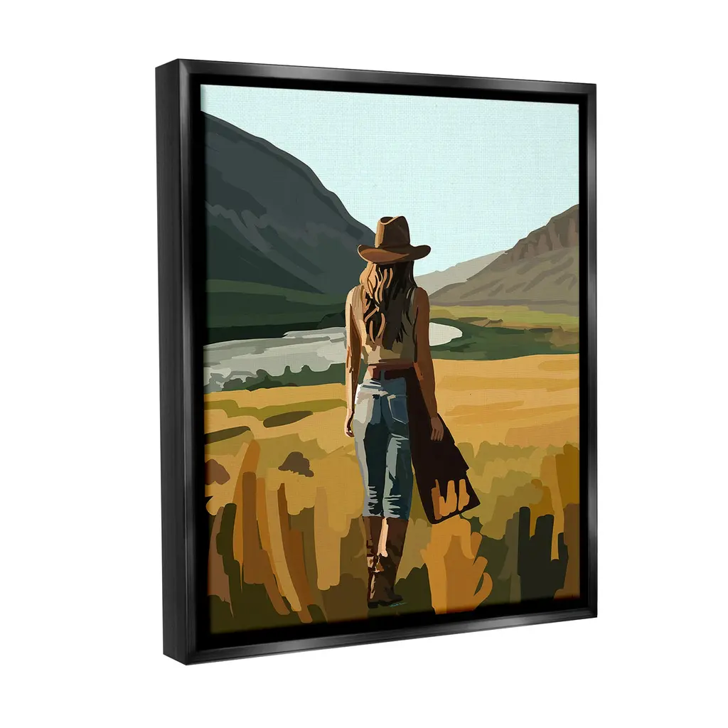 Stupell Strolling Cowgirl In Desert Framed Floater Canvas Wall Art Design By Amelia Noyes - 17 X 21 - Black