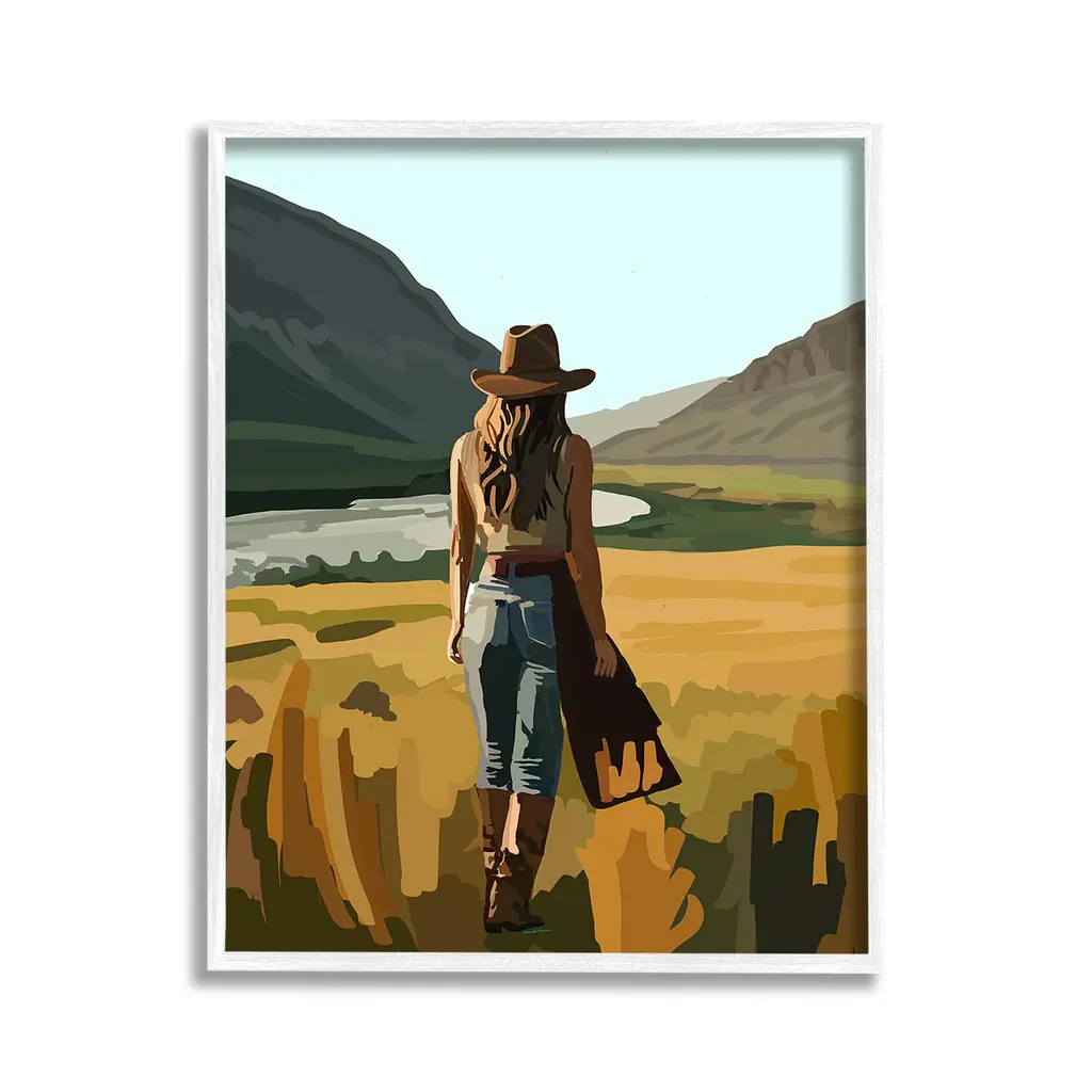 Elevate your home or office to the next level with Stupell Framed Floating Canvas Wall Art. Our premium hand-stretched canvas is mounted securely into a sturdy lightweight frame. The museum-style gap between the wrapped canvas and the box frame gives the illusion of floating artwork. Stupell Wall Art is made in the USA.Features: Dimensions: 17 x 1.7 x 21 Frame, 16 x 1.5 x 20 Canvas ArtFloating Frame Canvas Products are available in sizes 17"x21" and 25"x31". All Floating Frame Canvas Products have a 1.7" Depth.Wall Art is Ready to Hang with Hardware Free Hanging. No Installation required. For Easy Set Up Lean or Layer Artwork on Shelf or Against Wall. Artwork is Permently Fixed into the Frame.Our elevated 1.7" Thick Floating Frame is the perfect complement to our canvas style Wall Art. We use only the highest quality inks in house with industry leading printing solutions. Canvas is hand stretched over a durable wood foundation and then mounted securly into a Modern Box Frame. Made in the USA.Artwork Relates To: Equestrian, Rodeo, Country, Southwestern, Cowgirl, Cowboy Boot, Nature, Landscape, DesertDesign by Amelia Noyes