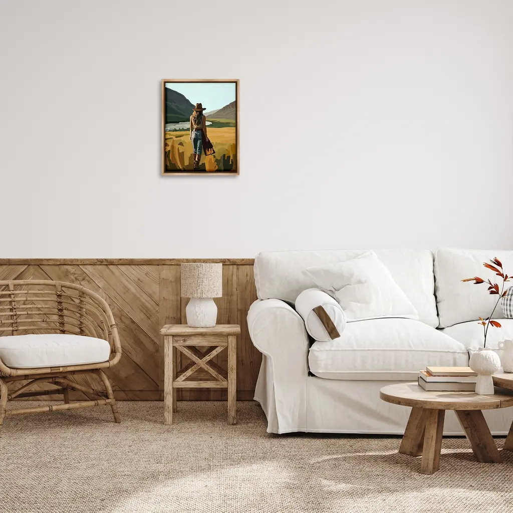Elevate your home or office to the next level with Stupell Framed Floating Canvas Wall Art. Our premium hand-stretched canvas is mounted securely into a sturdy lightweight frame. The museum-style gap between the wrapped canvas and the box frame gives the illusion of floating artwork. Stupell Wall Art is made in the USA.Features: Dimensions: 17 x 1.7 x 21 Frame, 16 x 1.5 x 20 Canvas ArtFloating Frame Canvas Products are available in sizes 17"x21" and 25"x31". All Floating Frame Canvas Products have a 1.7" Depth.Wall Art is Ready to Hang with Hardware Free Hanging. No Installation required. For Easy Set Up Lean or Layer Artwork on Shelf or Against Wall. Artwork is Permently Fixed into the Frame.Our elevated 1.7" Thick Floating Frame is the perfect complement to our canvas style Wall Art. We use only the highest quality inks in house with industry leading printing solutions. Canvas is hand stretched over a durable wood foundation and then mounted securly into a Modern Box Frame. Made in the USA.Artwork Relates To: Equestrian, Rodeo, Country, Southwestern, Cowgirl, Cowboy Boot, Nature, Landscape, DesertDesign by Amelia Noyes
