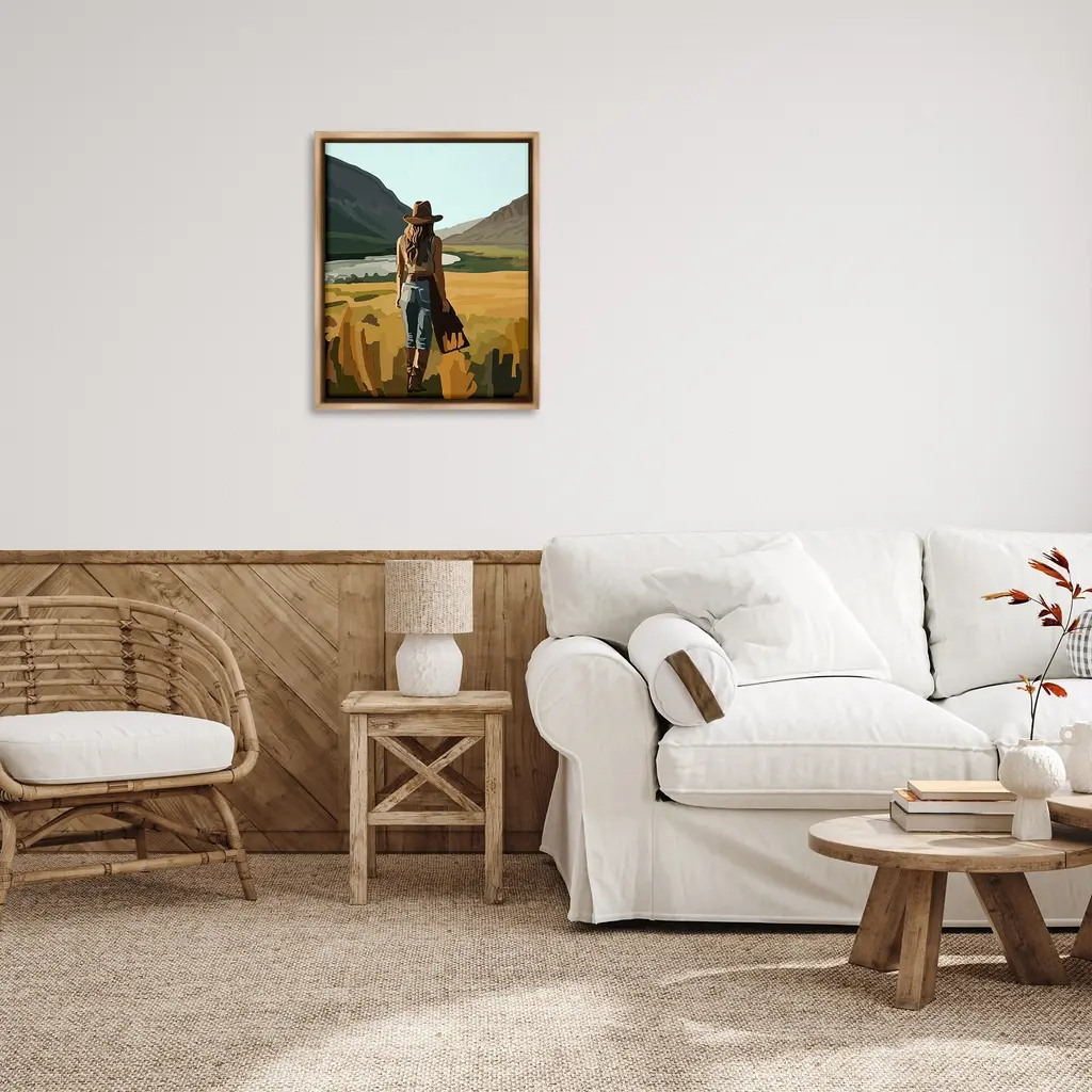 Stupell Strolling Cowgirl In Desert Framed Floater Canvas Wall Art Design By Amelia Noyes - 25 X 31 - Brown