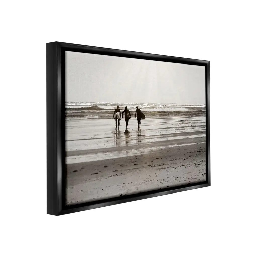 Elevate your home or office to the next level with Stupell Framed Floating Canvas Wall Art. Our premium hand-stretched canvas is mounted securely into a sturdy lightweight frame. The museum-style gap between the wrapped canvas and the box frame gives the illusion of floating artwork. Stupell Wall Art is made in the USA.Features: Dimensions: 21 x 1.7 x 17 Frame, 20 x 1.5 x 16 Canvas ArtFloating Frame Canvas Products are available in sizes 21"x17" and 31"x25". All Floating Frame Canvas Products have a 1.7" Depth.Wall Art is Ready to Hang with Hardware Free Hanging. No Installation required. For Easy Set Up Lean or Layer Artwork on Shelf or Against Wall. Artwork is Permently Fixed into the Frame.Our elevated 1.7" Thick Floating Frame is the perfect complement to our canvas style Wall Art. We use only the highest quality inks in house with industry leading printing solutions. Canvas is hand stretched over a durable wood foundation and then mounted securly into a Modern Box Frame. Made in the USA.Artwork Relates To: Beach, Coast, Sea, Shoreline, Nautical, Shore, Person, People, Surfing, Surfboard, SurferDesign by GraffiTee Studios