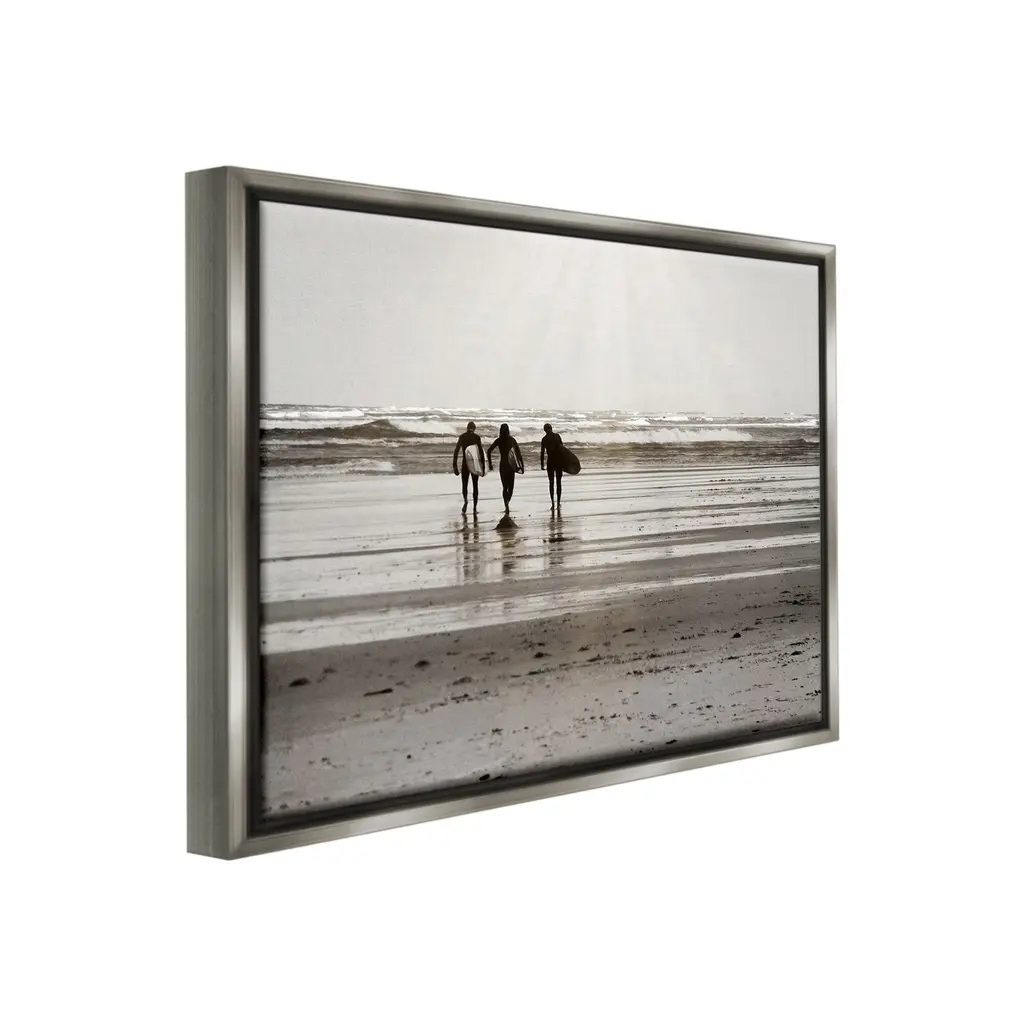 Elevate your home or office to the next level with Stupell Framed Floating Canvas Wall Art. Our premium hand-stretched canvas is mounted securely into a sturdy lightweight frame. The museum-style gap between the wrapped canvas and the box frame gives the illusion of floating artwork. Stupell Wall Art is made in the USA.Features: Dimensions: 21 x 1.7 x 17 Frame, 20 x 1.5 x 16 Canvas ArtFloating Frame Canvas Products are available in sizes 21"x17" and 31"x25". All Floating Frame Canvas Products have a 1.7" Depth.Wall Art is Ready to Hang with Hardware Free Hanging. No Installation required. For Easy Set Up Lean or Layer Artwork on Shelf or Against Wall. Artwork is Permently Fixed into the Frame.Our elevated 1.7" Thick Floating Frame is the perfect complement to our canvas style Wall Art. We use only the highest quality inks in house with industry leading printing solutions. Canvas is hand stretched over a durable wood foundation and then mounted securly into a Modern Box Frame. Made in the USA.Artwork Relates To: Beach, Coast, Sea, Shoreline, Nautical, Shore, Person, People, Surfing, Surfboard, SurferDesign by GraffiTee Studios