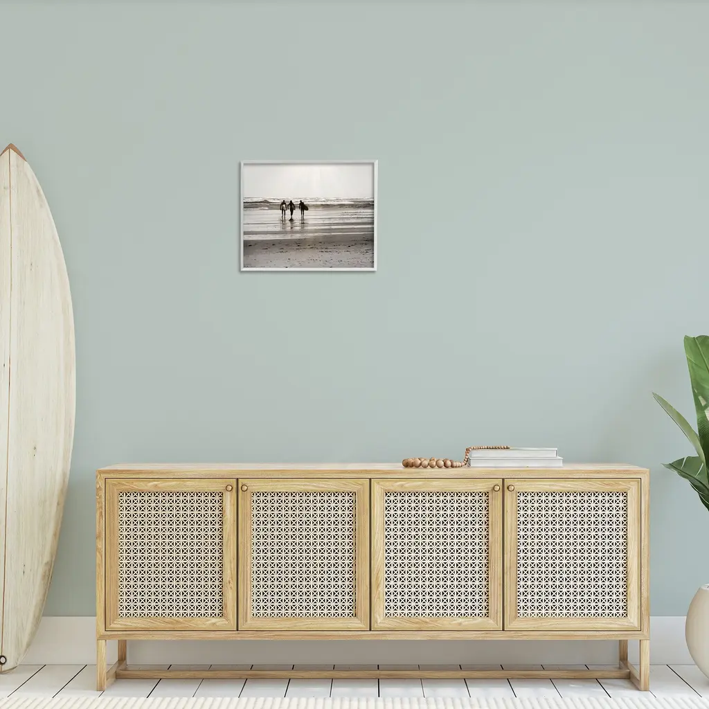 Add dimension to any room with our textured Framed Giclee Artwork. Our framed artwork is securely mounted into a 1.5-inch thick wood grain frame and ready to hang. Frames are available in three alluring styles: black, gray farmhouse and white. In addition, you should check out our oversized options if you want a statement piece. Stupell Wall Art is made in the USA.Features: Dimensions: 14 x 1.5 x 11 FramedFramed Giclee Products are available in the sizes 14"x11", 20"x16" or 30"x24". All Framed Giclee Products have a 1.5" Depth. Wall Art is Ready to Hang with Hardware Free Hanging. No installation required. For Easy Set Up Lean or Layer Artwork on Shelf or Against Wall.Our giclée prints are carefully mounted on a durable MDF backing, and then perfectly finished in a 1.5 inch thick woodgrain frame. Mounted frame colors include black, gray farmhouse and white. Made In USA.Artwork Relates To: Beach, Coast, Sea, Shoreline, Nautical, Shore, Person, People, Surfing, Surfboard, SurferDesign by GraffiTee Studios
