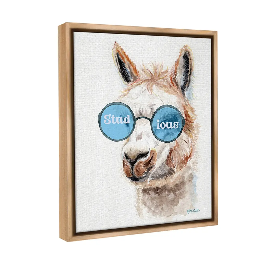 Elevate your home or office to the next level with Stupell Framed Floating Canvas Wall Art. Our premium hand-stretched canvas is mounted securely into a sturdy lightweight frame. The museum-style gap between the wrapped canvas and the box frame gives the illusion of floating artwork. Stupell Wall Art is made in the USA.Features: Dimensions: 17 x 1.7 x 21 Frame, 16 x 1.5 x 20 Canvas ArtFloating Frame Canvas Products are available in sizes 17"x21" and 25"x31". All Floating Frame Canvas Products have a 1.7" Depth.Wall Art is Ready to Hang with Hardware Free Hanging. No Installation required. For Easy Set Up Lean or Layer Artwork on Shelf or Against Wall. Artwork is Permently Fixed into the Frame.Our elevated 1.7" Thick Floating Frame is the perfect complement to our canvas style Wall Art. We use only the highest quality inks in house with industry leading printing solutions. Canvas is hand stretched over a durable wood foundation and then mounted securly into a Modern Box Frame. Made in the USA.Artwork Relates To: Animal, Llama, , Farm, Humor, Funny, Glasses, StudiousDesign by Jennifer Redstreake