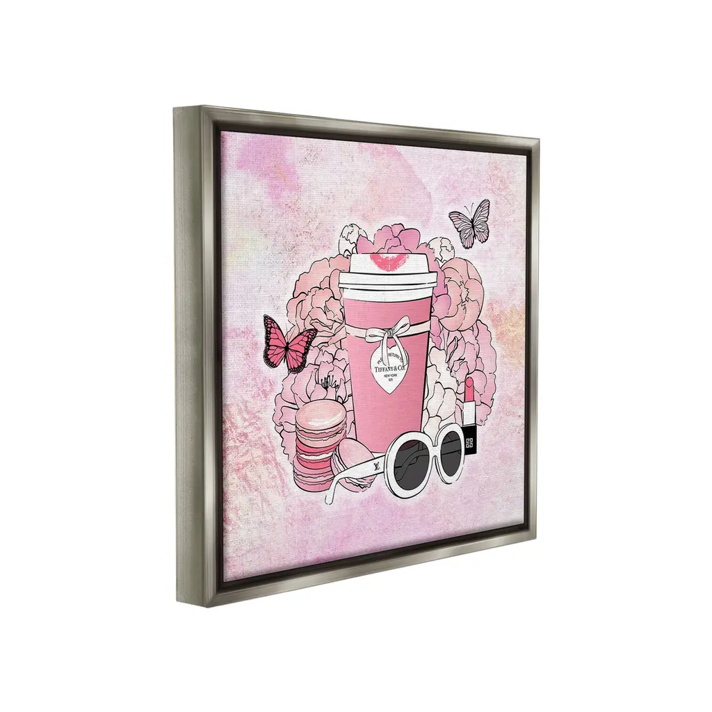 Elevate your home or office to the next level with Stupell Framed Floating Canvas Wall Art. Our premium hand-stretched canvas is mounted securely into a sturdy lightweight frame. The museum-style gap between the wrapped canvas and the box frame gives the illusion of floating artwork. Stupell Wall Art is made in the USA.Features: Dimensions: 18 x 1.7 x 18 Frame, 17 x 1.5 x 17 Canvas ArtFloating Frame Canvas Products are available in sizes 18"x18" and 25"x25". All Floating Frame Canvas Products have a 1.7" Depth.Wall Art is Ready to Hang with Hardware Free Hanging. No Installation required. For Easy Set Up Lean or Layer Artwork on Shelf or Against Wall. Artwork is Permently Fixed into the Frame.Our elevated 1.7" Thick Floating Frame is the perfect complement to our canvas style Wall Art. We use only the highest quality inks in house with industry leading printing solutions. Canvas is hand stretched over a durable wood foundation and then mounted securly into a Modern Box Frame. Made in the USA.Artwork Relates To: Food, Dessert, Coffee, Sunglasses, Butterfly, Flower, Floral, Blossom, Pattern, Glam, FashionDesign by Martina Pavlova