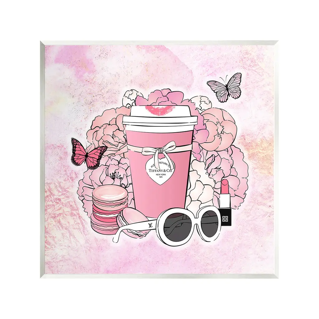 Add dimension to any room with our textured Framed Giclee Artwork. Our framed artwork is securely mounted into a 1.5-inch thick wood grain frame and ready to hang. Frames are available in three alluring styles: black, gray farmhouse and white. In addition, you should check out our oversized options if you want a statement piece. Stupell Wall Art is made in the USA.Features: Dimensions: 12 x 1.5 x 12 FramedFramed Giclee Product Sizes Include 12"x12", 17"x17", and 24"x24". Framed Giclee Products have a 1.5" Depth. Wall Art is Ready to Hang with Hardware Free Hanging. No installation required. For Easy Set Up Lean or Layer Artwork on Shelf or Against Wall.Our giclée prints are carefully mounted on a durable MDF backing, and then perfectly finished in a 1.5 inch thick woodgrain frame. Mounted frame colors include black, gray farmhouse and white. Made In USA.Artwork Relates To: Food, Dessert, Coffee, Sunglasses, Butterfly, Flower, Floral, Blossom, Pattern, Glam, FashionDesign by Martina Pavlova