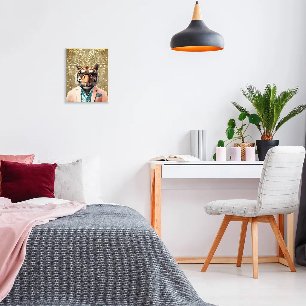 Our wall plaques start as high-quality lithograph prints mounted on durable 0.5-inch thick MDF wood. Each piece is hand finished and comes with a fresh layer of white foil on the sides to give it a crisp, clean look. Plaques arrive ready to hang without installation and come with removable plastic corners to keep them from damage in transit. Stupell Wall Art is made in the USA.Features: Dimensions: 11 x 0.5 x 14 InchesWall Art is Ready to Hang with Hardware Free Hanging. No installation required. For Easy Set Up Lean or Layer Artwork on Shelf or Against Wall.All of our wall plaques start off as high quality lithograph prints that are then mounted on durable 0.5 inch thick MDF wood. Each piece is hand finished and comes with a fresh layer of foil on the sides to give it a crisp clean look. Made In USA.Artwork Relates To: Animal, Wildlife, Tiger, Floral, Pattern, FashionDesign by Svetlana Aleynikova