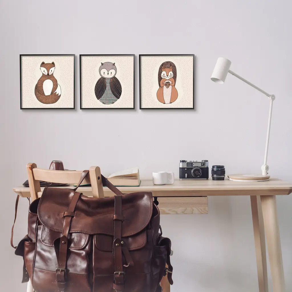 Stupell Stylized Animal Portraits Kids Owl Fox Squirrel 3 Piece Framed Wall Art, Design By Birgit Maria Kiennast - 12 X 12 - Black