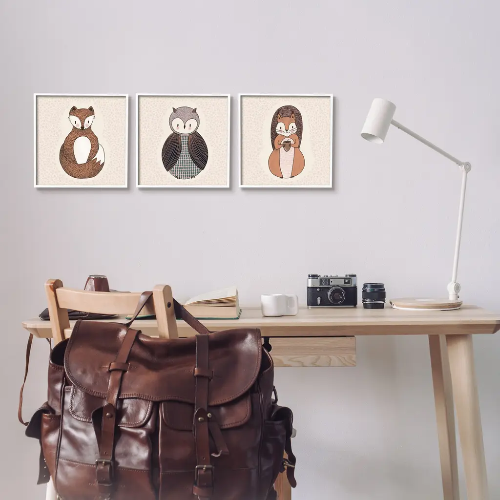 Stupell Stylized Animal Portraits Kids Owl Fox Squirrel 3 Piece Framed Wall Art, Design By Birgit Maria Kiennast - 12 X 12 - White
