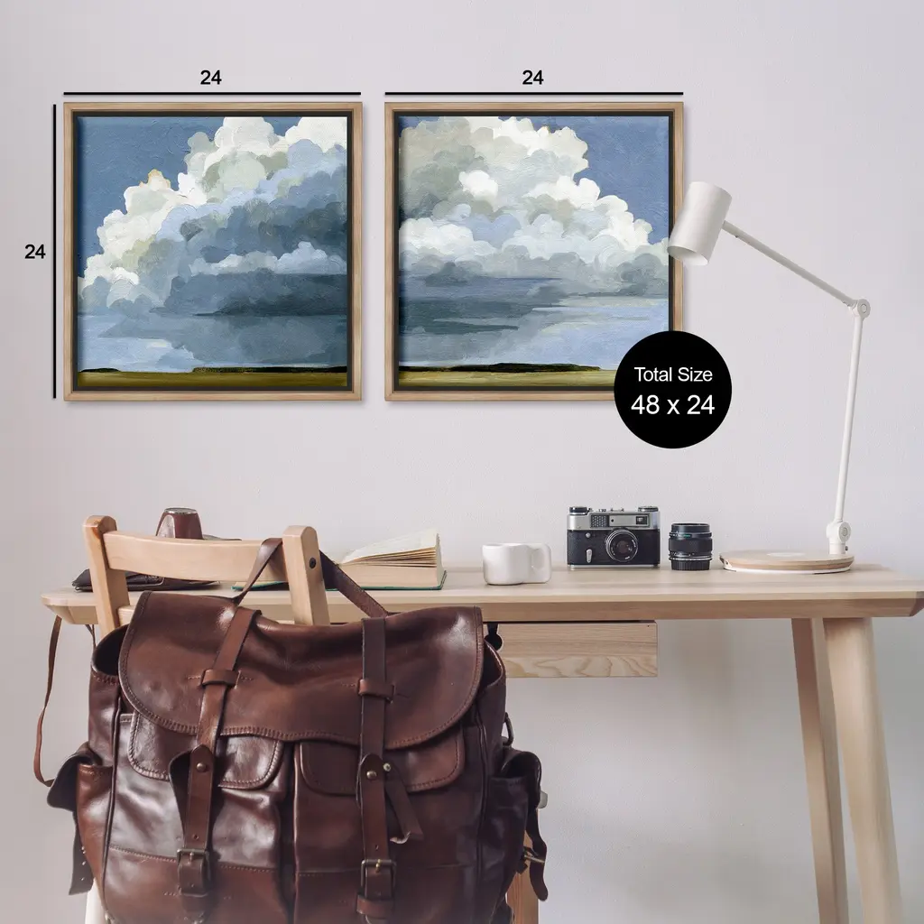 Elevate your home or office to the next level with Stupell Framed Floating Canvas Wall Art. Our premium hand-stretched canvas is mounted securely into a sturdy lightweight frame. The museum-style gap between the wrapped canvas and the box frame gives the illusion of floating artwork. Stupell Wall Art is made in the USA.Features: Dimensions: 2 Piece Set, Each Frame is 18 x 1.7 x 18Two Piece Floating Frame Canvas Products are available as 18"x18" or 25"x25" Panels. All Floating Frame Canvas Products have a 1.7" Depth.Wall Art is Ready to Hang with Hardware Free Hanging. No Installation required. For Easy Set Up Lean or Layer Artwork on Shelf or Against Wall. Artwork is Permently Fixed into the Frame.Our elevated 1.7" Thick Floating Frame is the perfect complement to our canvas style Wall Art. We use only the highest quality inks in house with industry leading printing solutions. Canvas is hand stretched over a durable wood foundation and then mounted securly into a Modern Box Frame. Made in the USA.Artwork Relates To: Nature, Weather, Sky, Cumulus, CloudDesign by Emma Caroline