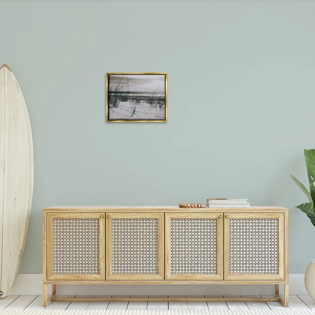 Elevate your home or office to the next level with Stupell Framed Floating Canvas Wall Art. Our premium hand-stretched canvas is mounted securely into a sturdy lightweight frame. The museum-style gap between the wrapped canvas and the box frame gives the illusion of floating artwork. Stupell Wall Art is made in the USA.Features: Dimensions: 21 x 1.7 x 17 Frame, 20 x 1.5 x 16 Canvas ArtFloating Frame Canvas Products are available in sizes 21"x17" and 31"x25". All Floating Frame Canvas Products have a 1.7" Depth.Wall Art is Ready to Hang with Hardware Free Hanging. No Installation required. For Easy Set Up Lean or Layer Artwork on Shelf or Against Wall. Artwork is Permently Fixed into the Frame.Our elevated 1.7" Thick Floating Frame is the perfect complement to our canvas style Wall Art. We use only the highest quality inks in house with industry leading printing solutions. Canvas is hand stretched over a durable wood foundation and then mounted securly into a Modern Box Frame. Made in the USA.Artwork Relates To: Beach, Coast, Sea, Shoreline, Nautical, Shore, ReedsDesign by GraffiTee Studios