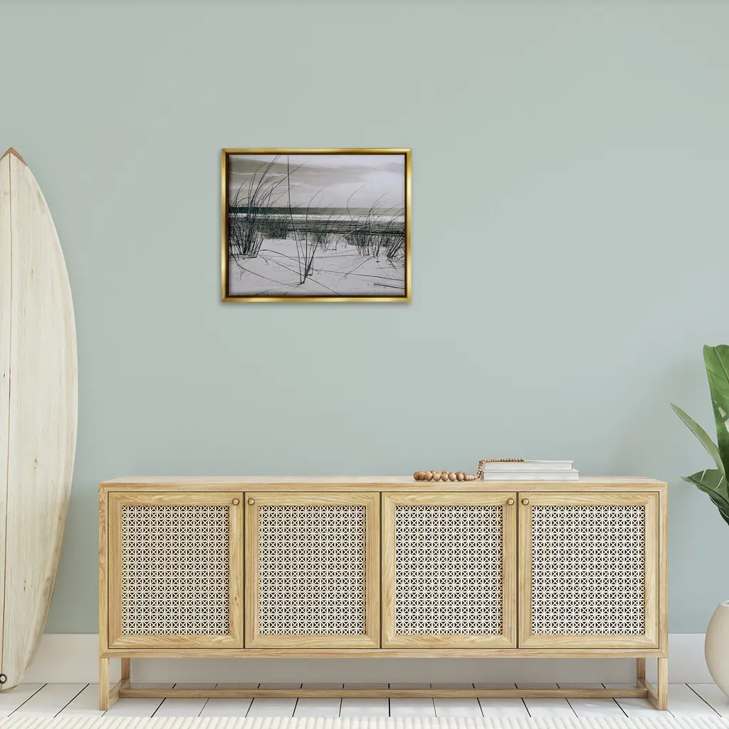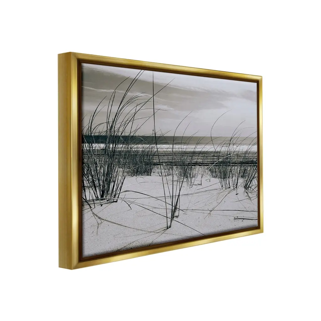 Elevate your home or office to the next level with Stupell Framed Floating Canvas Wall Art. Our premium hand-stretched canvas is mounted securely into a sturdy lightweight frame. The museum-style gap between the wrapped canvas and the box frame gives the illusion of floating artwork. Stupell Wall Art is made in the USA.Features: Dimensions: 21 x 1.7 x 17 Frame, 20 x 1.5 x 16 Canvas ArtFloating Frame Canvas Products are available in sizes 21"x17" and 31"x25". All Floating Frame Canvas Products have a 1.7" Depth.Wall Art is Ready to Hang with Hardware Free Hanging. No Installation required. For Easy Set Up Lean or Layer Artwork on Shelf or Against Wall. Artwork is Permently Fixed into the Frame.Our elevated 1.7" Thick Floating Frame is the perfect complement to our canvas style Wall Art. We use only the highest quality inks in house with industry leading printing solutions. Canvas is hand stretched over a durable wood foundation and then mounted securly into a Modern Box Frame. Made in the USA.Artwork Relates To: Beach, Coast, Sea, Shoreline, Nautical, Shore, ReedsDesign by GraffiTee Studios