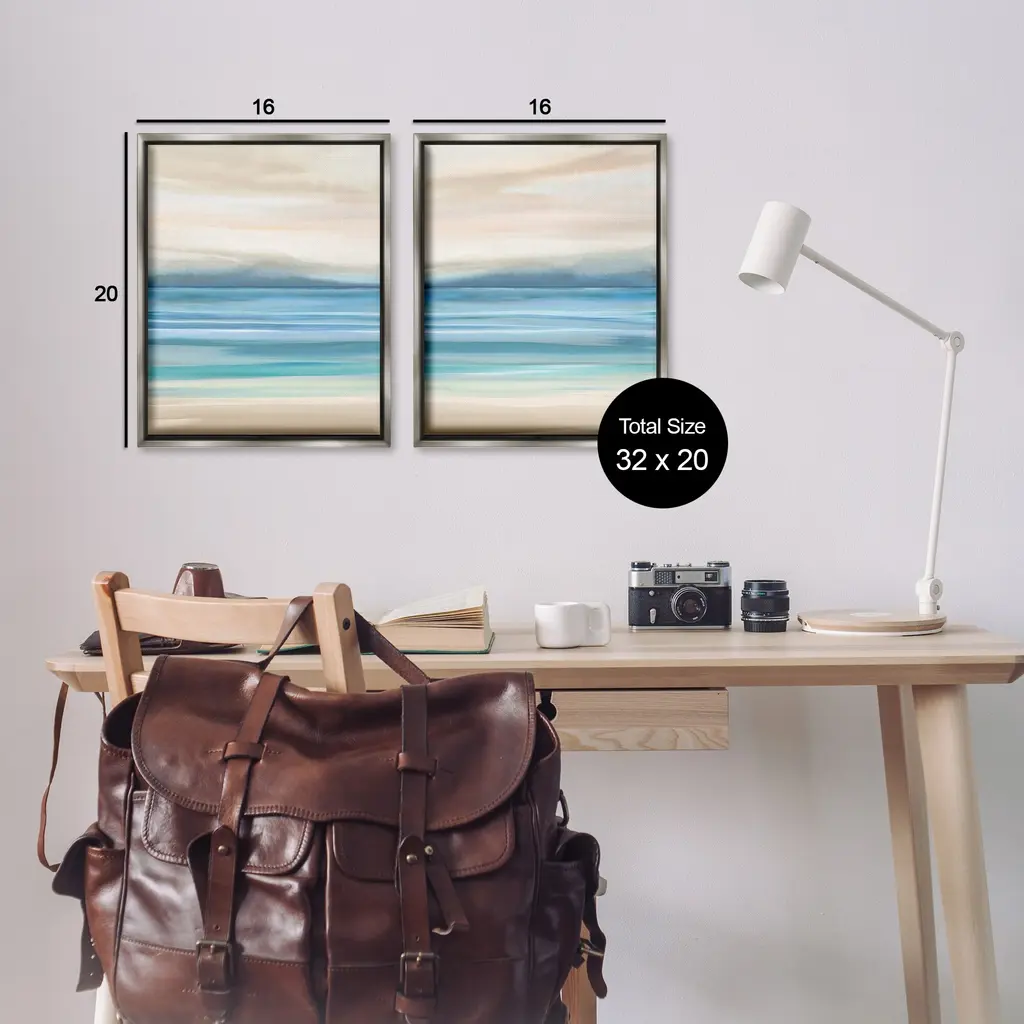 Elevate your home or office to the next level with Stupell Framed Floating Canvas Wall Art. Our premium hand-stretched canvas is mounted securely into a sturdy lightweight frame. The museum-style gap between the wrapped canvas and the box frame gives the illusion of floating artwork. Stupell Wall Art is made in the USA.Features: Dimensions: 2 Piece Set, Each Frame is 17 x 1.7 x 21Two Piece Floater Framed Canvas are available as 17x21 or 25x31 Panels. All Floater Frame Products have a 1.7" Depth.Wall Art is Ready to Hang with Hardware Free Hanging. No Installation required. For Easy Set Up Lean or Layer Artwork on Shelf or Against Wall. Artwork is Permently Fixed into the Frame.Our elevated 1.7" Thick Floating Frame is the perfect complement to our canvas style Wall Art. We use only the highest quality inks in house with industry leading printing solutions. Canvas is hand stretched over a durable wood foundation and then mounted securly into a Modern Box Frame. Made in the USA.Artwork Relates To: Abstract, Landscape, Ocean, Beach, Sea, Coast, HorizonDesign by Amber Sterling