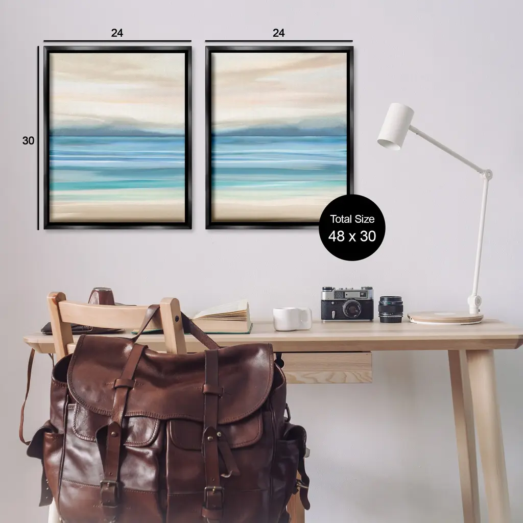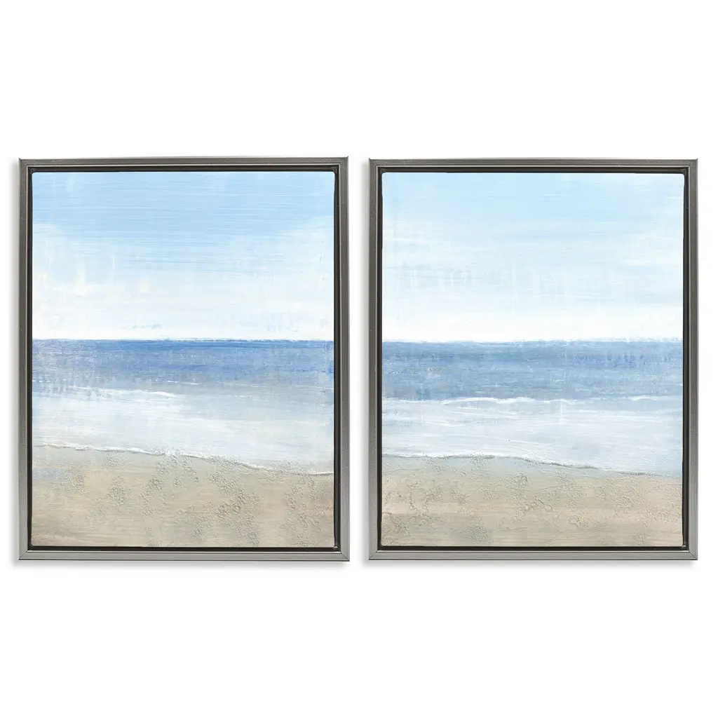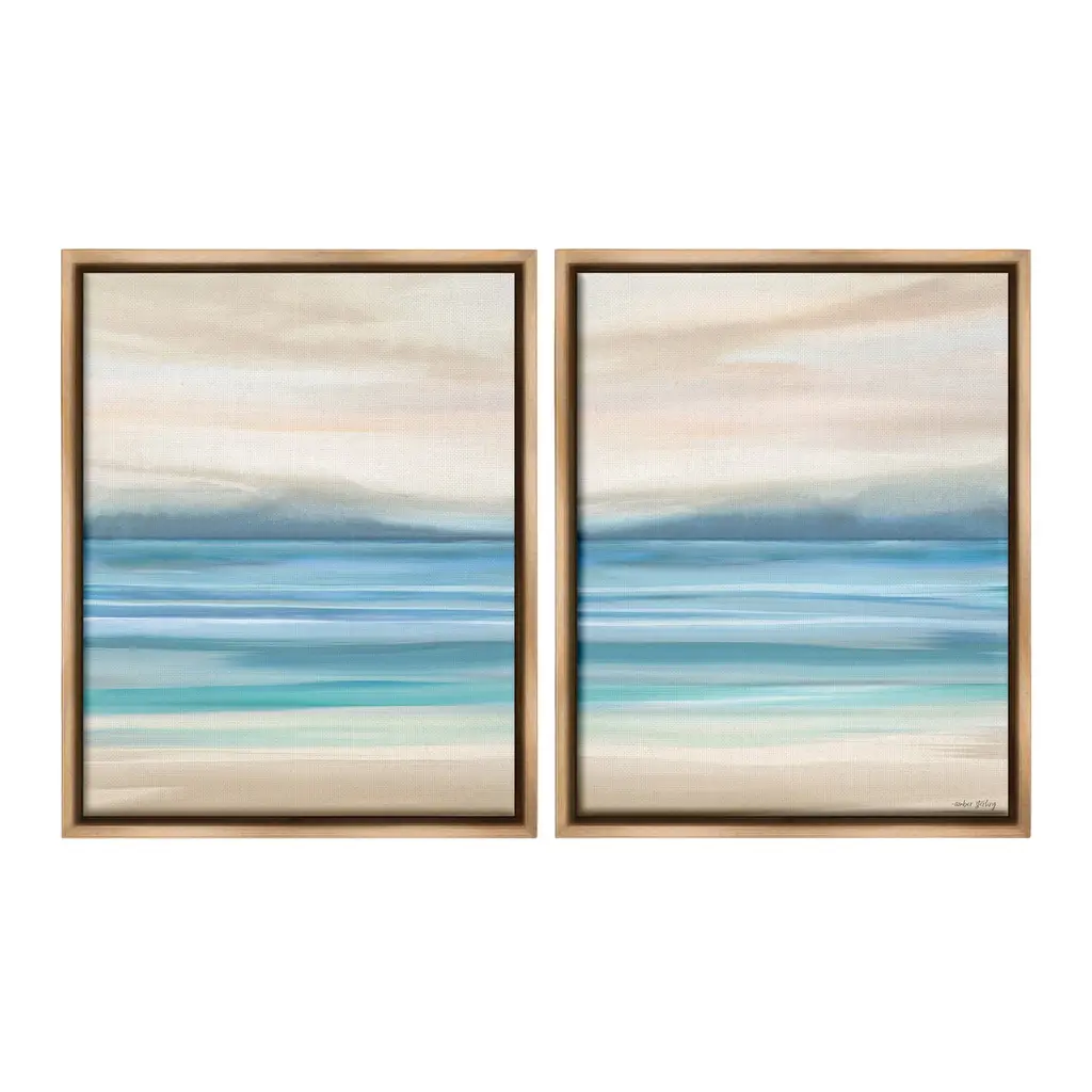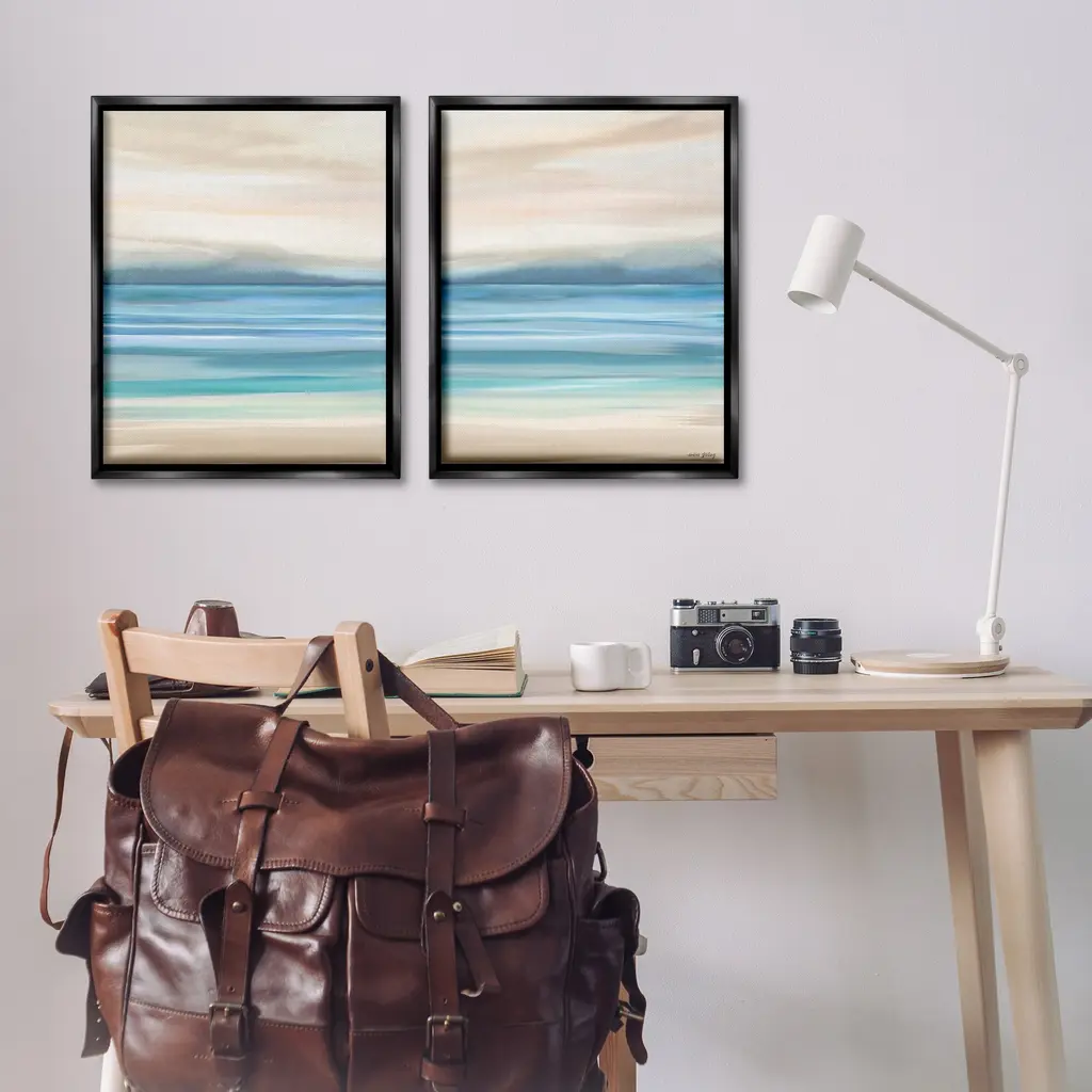 Elevate your home or office to the next level with Stupell Framed Floating Canvas Wall Art. Our premium hand-stretched canvas is mounted securely into a sturdy lightweight frame. The museum-style gap between the wrapped canvas and the box frame gives the illusion of floating artwork. Stupell Wall Art is made in the USA.Features: Dimensions: 2 Piece Set, Each Frame is 17 x 1.7 x 21Two Piece Floater Framed Canvas are available as 17x21 or 25x31 Panels. All Floater Frame Products have a 1.7" Depth.Wall Art is Ready to Hang with Hardware Free Hanging. No Installation required. For Easy Set Up Lean or Layer Artwork on Shelf or Against Wall. Artwork is Permently Fixed into the Frame.Our elevated 1.7" Thick Floating Frame is the perfect complement to our canvas style Wall Art. We use only the highest quality inks in house with industry leading printing solutions. Canvas is hand stretched over a durable wood foundation and then mounted securly into a Modern Box Frame. Made in the USA.Artwork Relates To: Abstract, Landscape, Ocean, Beach, Sea, Coast, HorizonDesign by Amber Sterling