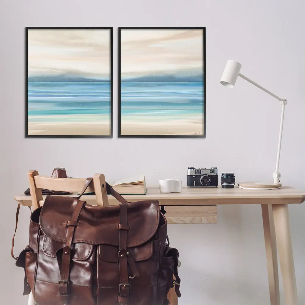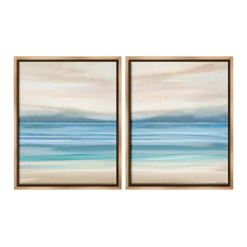 Fill any space in your home or office with our Framed Wall Art Sets. Our framed artwork is securely mounted into a 1.5-inch thick wood grain frame and ready to hang. Frames are available in three alluring styles: black, gray farmhouse and white. Stupell Wall Art is made in the USA.Features: Dimensions: 2 Piece Set, Each Panel is 11 x 1.5 x 14 FramedTwo Piece Framed Giclee Sets are available as 11"x14", 16"x20" or 24"x30" Panels. All Framed Giclee Products have a 1.5" Depth.Wall Art is Ready to Hang with Hardware Free Hanging. No installation required. For Easy Set Up Lean or Layer Artwork on Shelf or Against Wall.Curated Wall Art Sets make it easy for you complete the theme for any room. Our giclée prints are carefully mounted on a durable MDF backing, and then perfectly finished in a 1.5 inch thick woodgrain frame. Mounted frame colors include black, gray farmhouse and white. Made In USA.Artwork Relates To: Abstract, Landscape, Ocean, Beach, Sea, Coast, HorizonDesign by Amber Sterling