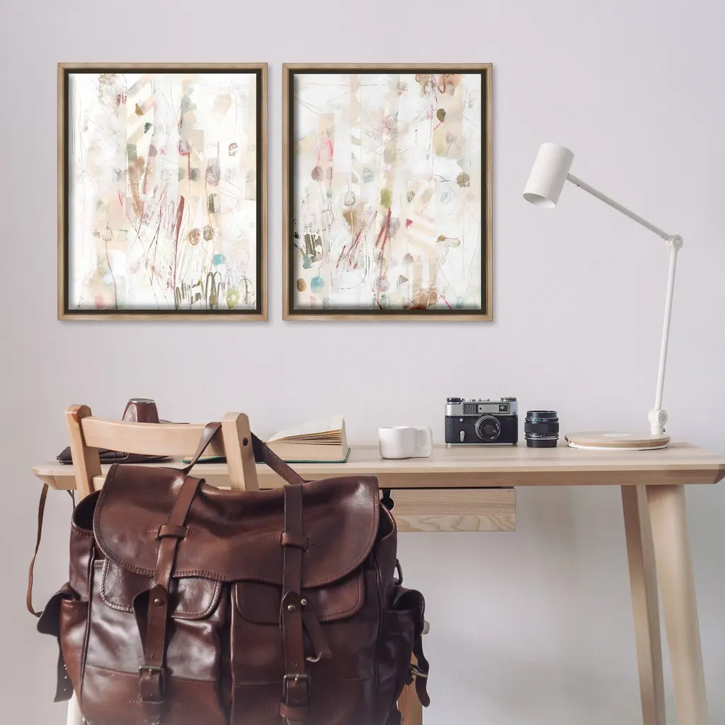 Elevate your home or office to the next level with Stupell Framed Floating Canvas Wall Art. Our premium hand-stretched canvas is mounted securely into a sturdy lightweight frame. The museum-style gap between the wrapped canvas and the box frame gives the illusion of floating artwork. Stupell Wall Art is made in the USA.Features: Dimensions: 2 Piece Set, Each Frame is 17 x 1.7 x 21Two Piece Floater Framed Canvas are available as 17x21 or 25x31 Panels. All Floater Frame Products have a 1.7" Depth.Wall Art is Ready to Hang with Hardware Free Hanging. No Installation required. For Easy Set Up Lean or Layer Artwork on Shelf or Against Wall. Artwork is Permently Fixed into the Frame.Our elevated 1.7" Thick Floating Frame is the perfect complement to our canvas style Wall Art. We use only the highest quality inks in house with industry leading printing solutions. Canvas is hand stretched over a durable wood foundation and then mounted securly into a Modern Box Frame. Made in the USA.Artwork Relates To: Abstract, Modern, Contemporary, Pattern, ChaoticDesign by June Erica Vess