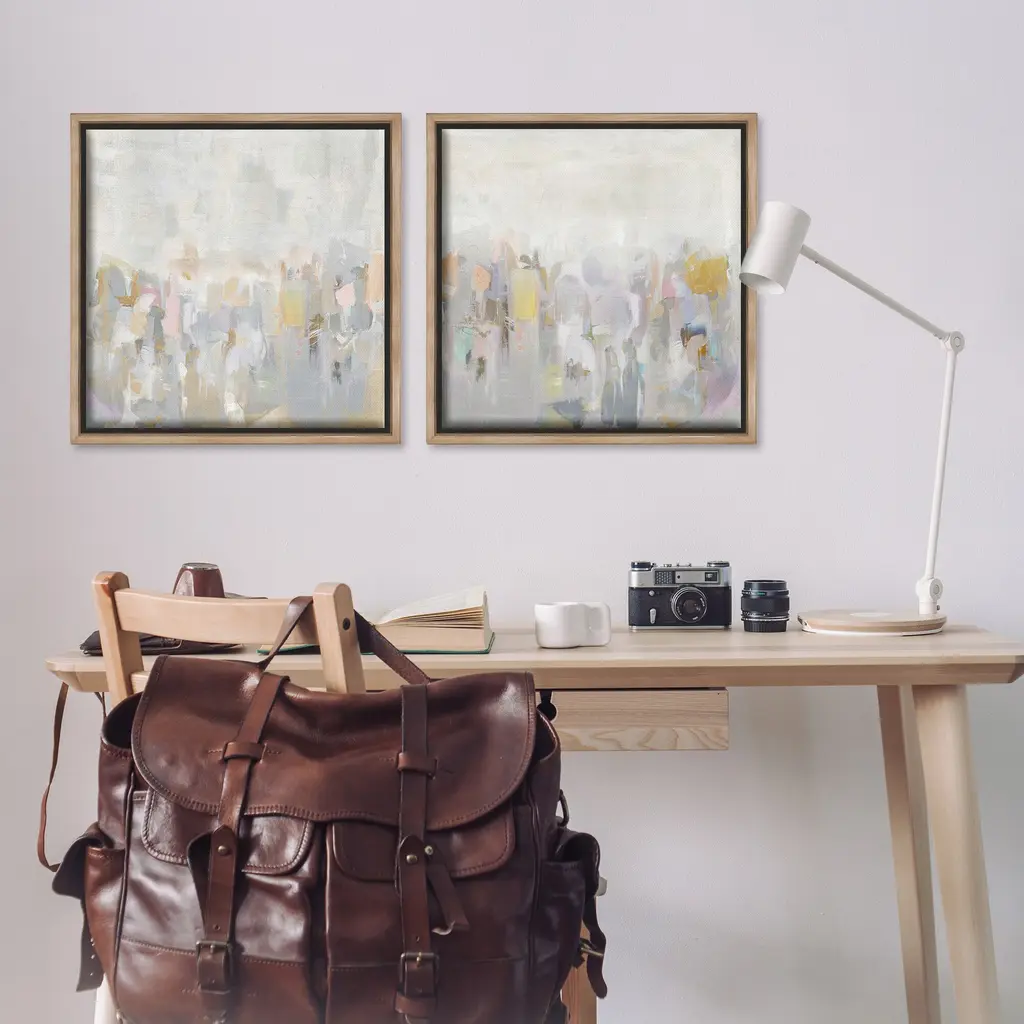 Elevate your home or office to the next level with Stupell Framed Floating Canvas Wall Art. Our premium hand-stretched canvas is mounted securely into a sturdy lightweight frame. The museum-style gap between the wrapped canvas and the box frame gives the illusion of floating artwork. Stupell Wall Art is made in the USA.Features: Dimensions: 2 Piece Set, Each Frame is 18 x 1.7 x 18Two Piece Floating Frame Canvas Products are available as 18"x18" or 25"x25" Panels. All Floating Frame Canvas Products have a 1.7" Depth.Wall Art is Ready to Hang with Hardware Free Hanging. No Installation required. For Easy Set Up Lean or Layer Artwork on Shelf or Against Wall. Artwork is Permently Fixed into the Frame.Our elevated 1.7" Thick Floating Frame is the perfect complement to our canvas style Wall Art. We use only the highest quality inks in house with industry leading printing solutions. Canvas is hand stretched over a durable wood foundation and then mounted securly into a Modern Box Frame. Made in the USA.Artwork Relates To: Painting, Modern, Abstract, Modern, PatternDesign by Rachel Springer