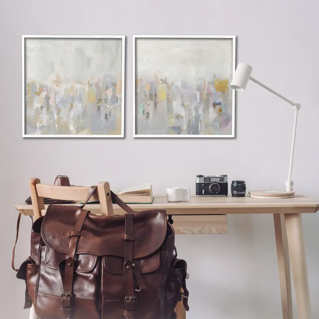 Stupell Subtle Neutral Abstraction Framed Giclee Art Design By Rachel Springer (Set Of 2) - 24 X 24 - White