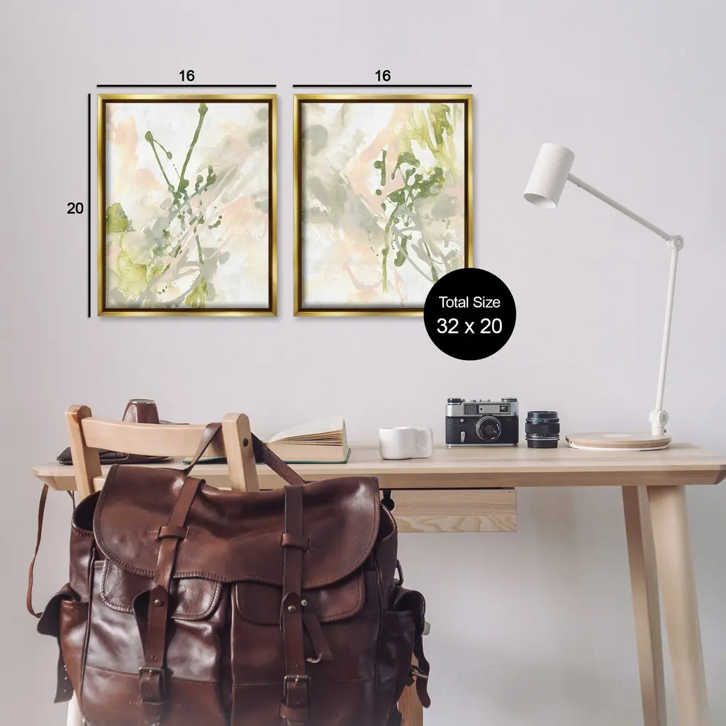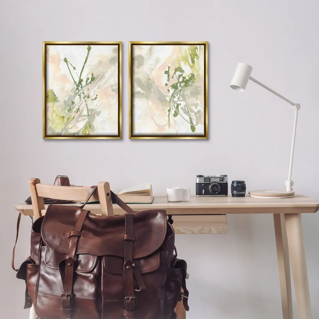 Elevate your home or office to the next level with Stupell Framed Floating Canvas Wall Art. Our premium hand-stretched canvas is mounted securely into a sturdy lightweight frame. The museum-style gap between the wrapped canvas and the box frame gives the illusion of floating artwork. Stupell Wall Art is made in the USA.Features: Dimensions: 2 Piece Set, Each Frame is 17 x 1.7 x 21Two Piece Floater Framed Canvas are available as 17x21 or 25x31 Panels. All Floater Frame Products have a 1.7" Depth.Wall Art is Ready to Hang with Hardware Free Hanging. No Installation required. For Easy Set Up Lean or Layer Artwork on Shelf or Against Wall. Artwork is Permently Fixed into the Frame.Our elevated 1.7" Thick Floating Frame is the perfect complement to our canvas style Wall Art. We use only the highest quality inks in house with industry leading printing solutions. Canvas is hand stretched over a durable wood foundation and then mounted securly into a Modern Box Frame. Made in the USA.Artwork Relates To: Abstract, Modern, Contemporary, Splatter, Splash, Pattern, PastelDesign by June Erica Vess