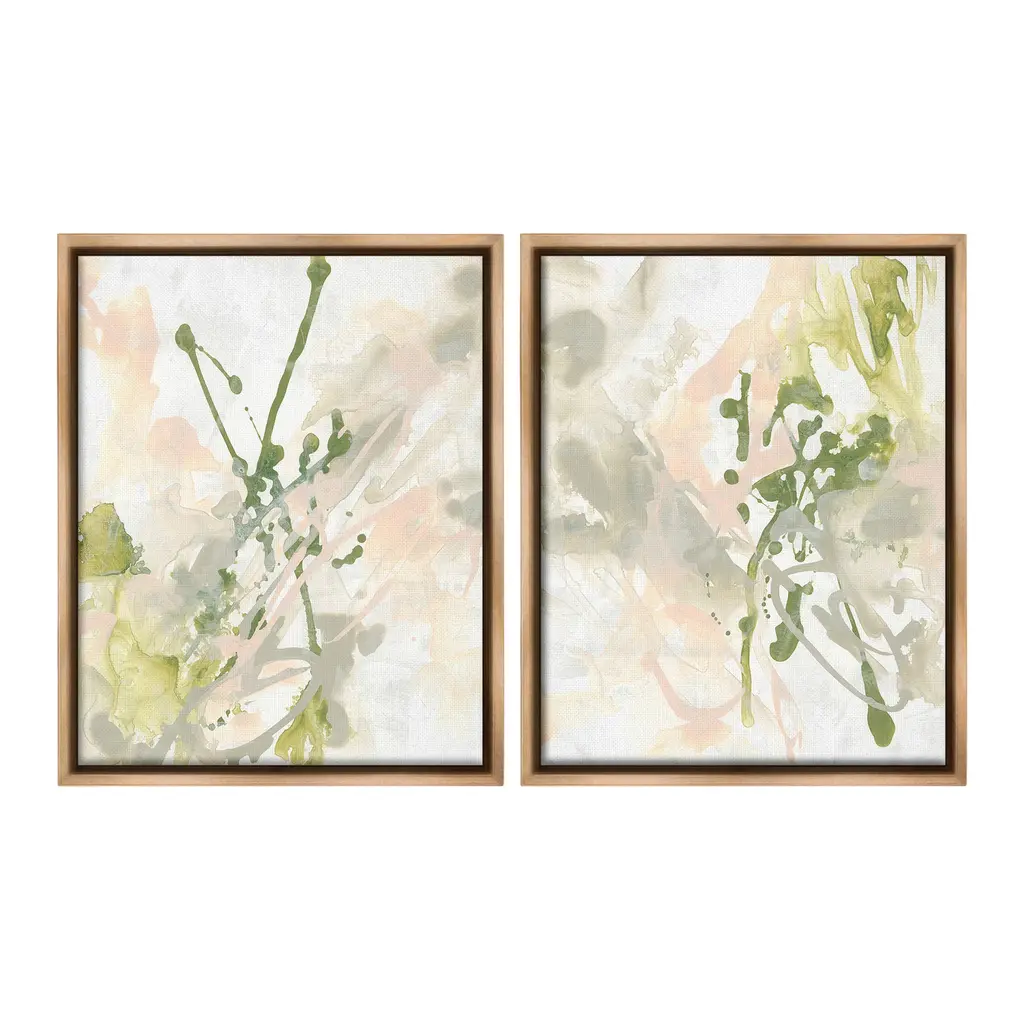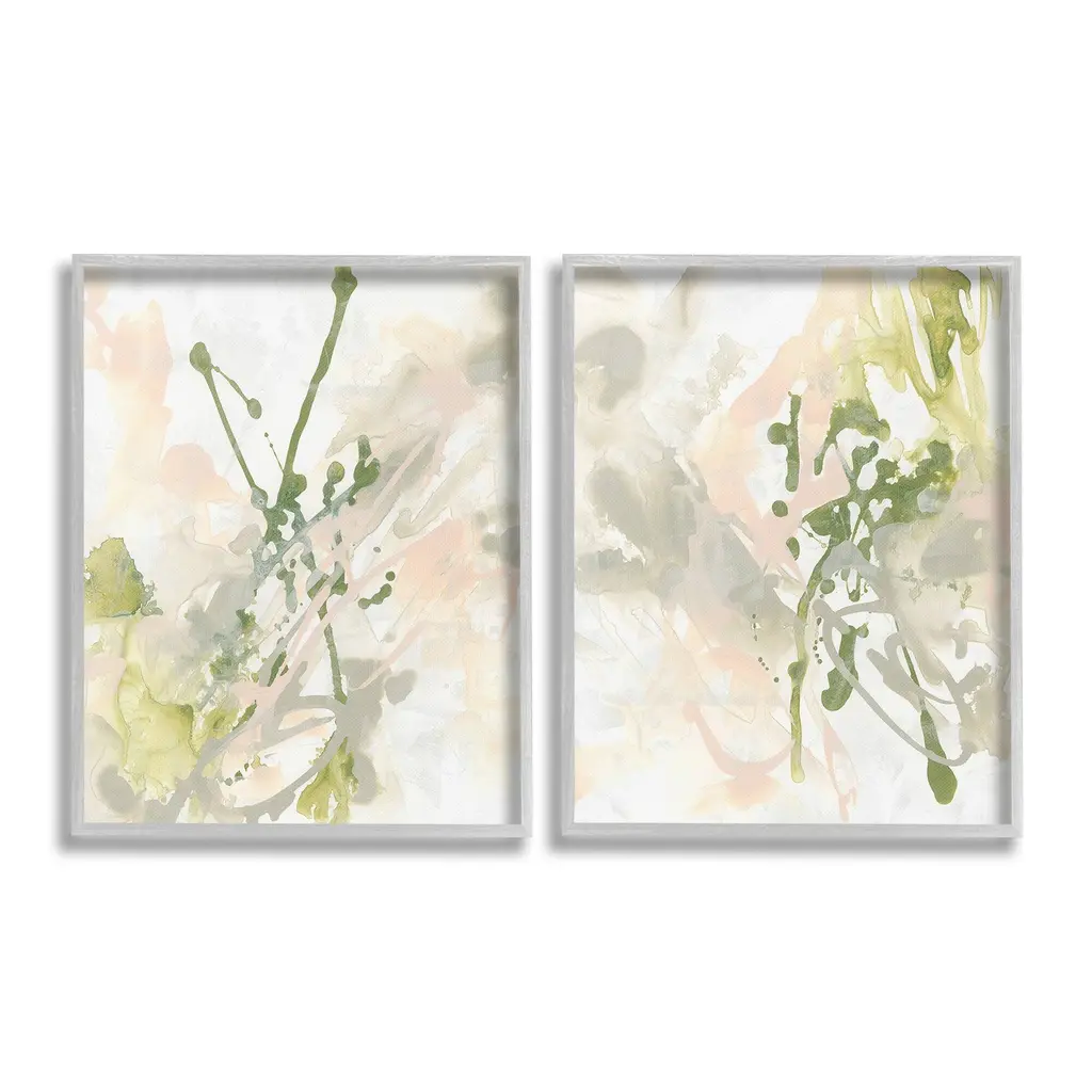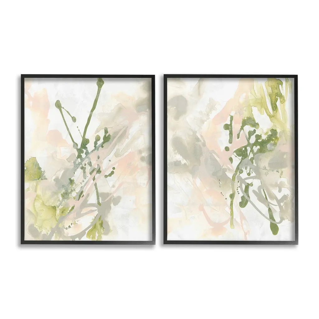 Fill any space in your home or office with our Framed Wall Art Sets. Our framed artwork is securely mounted into a 1.5-inch thick wood grain frame and ready to hang. Frames are available in three alluring styles: black, gray farmhouse and white. Stupell Wall Art is made in the USA.Features: Dimensions: 2 Piece Set, Each Panel is 11 x 1.5 x 14 FramedTwo Piece Framed Giclee Sets are available as 11"x14", 16"x20" or 24"x30" Panels. All Framed Giclee Products have a 1.5" Depth.Wall Art is Ready to Hang with Hardware Free Hanging. No installation required. For Easy Set Up Lean or Layer Artwork on Shelf or Against Wall.Curated Wall Art Sets make it easy for you complete the theme for any room. Our giclée prints are carefully mounted on a durable MDF backing, and then perfectly finished in a 1.5 inch thick woodgrain frame. Mounted frame colors include black, gray farmhouse and white. Made In USA.Artwork Relates To: Abstract, Modern, Contemporary, Splatter, Splash, Pattern, PastelDesign by June Erica Vess