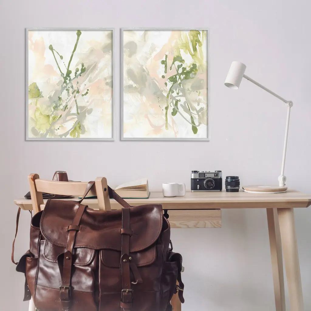 Fill any space in your home or office with our Framed Wall Art Sets. Our framed artwork is securely mounted into a 1.5-inch thick wood grain frame and ready to hang. Frames are available in three alluring styles: black, gray farmhouse and white. Stupell Wall Art is made in the USA.Features: Dimensions: 2 Piece Set, Each Panel is 11 x 1.5 x 14 FramedTwo Piece Framed Giclee Sets are available as 11"x14", 16"x20" or 24"x30" Panels. All Framed Giclee Products have a 1.5" Depth.Wall Art is Ready to Hang with Hardware Free Hanging. No installation required. For Easy Set Up Lean or Layer Artwork on Shelf or Against Wall.Curated Wall Art Sets make it easy for you complete the theme for any room. Our giclée prints are carefully mounted on a durable MDF backing, and then perfectly finished in a 1.5 inch thick woodgrain frame. Mounted frame colors include black, gray farmhouse and white. Made In USA.Artwork Relates To: Abstract, Modern, Contemporary, Splatter, Splash, Pattern, PastelDesign by June Erica Vess