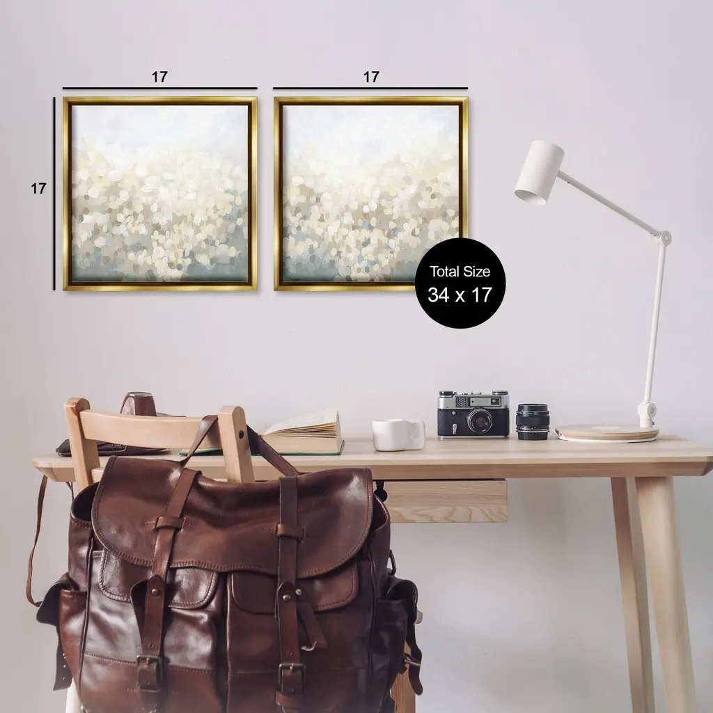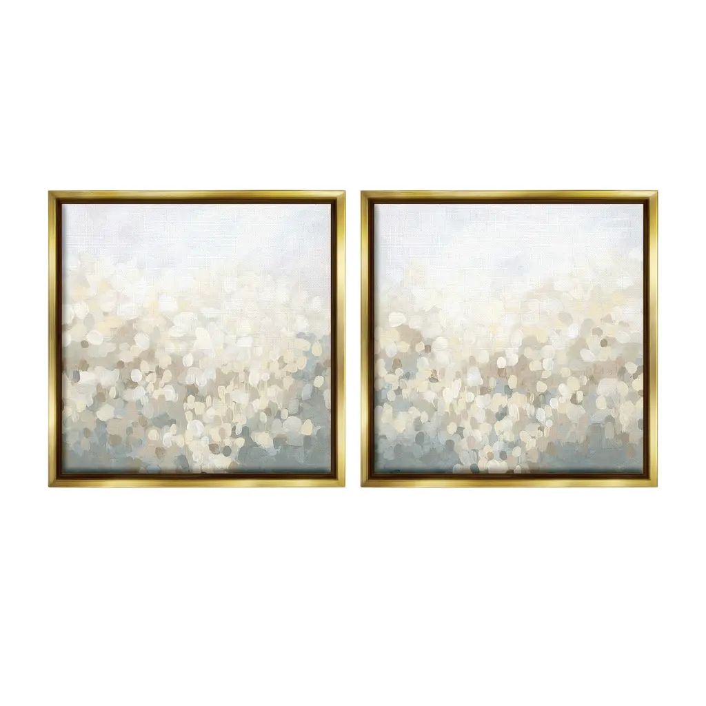 Elevate your home or office to the next level with Stupell Framed Floating Canvas Wall Art. Our premium hand-stretched canvas is mounted securely into a sturdy lightweight frame. The museum-style gap between the wrapped canvas and the box frame gives the illusion of floating artwork. Stupell Wall Art is made in the USA.Features: Dimensions: 2 Piece Set, Each Frame is 18 x 1.7 x 18Two Piece Floating Frame Canvas Products are available as 18"x18" or 25"x25" Panels. All Floating Frame Canvas Products have a 1.7" Depth.Wall Art is Ready to Hang with Hardware Free Hanging. No Installation required. For Easy Set Up Lean or Layer Artwork on Shelf or Against Wall. Artwork is Permently Fixed into the Frame.Our elevated 1.7" Thick Floating Frame is the perfect complement to our canvas style Wall Art. We use only the highest quality inks in house with industry leading printing solutions. Canvas is hand stretched over a durable wood foundation and then mounted securly into a Modern Box Frame. Made in the USA.Artwork Relates To: Abstract, Modern, Landscape, Subtle, SpeckledDesign by June Erica Vess