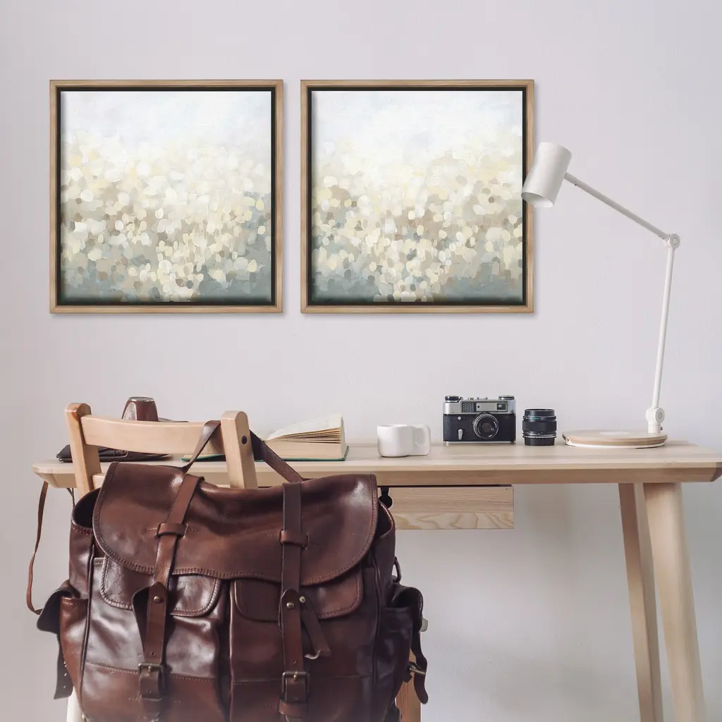 Elevate your home or office to the next level with Stupell Framed Floating Canvas Wall Art. Our premium hand-stretched canvas is mounted securely into a sturdy lightweight frame. The museum-style gap between the wrapped canvas and the box frame gives the illusion of floating artwork. Stupell Wall Art is made in the USA.Features: Dimensions: 2 Piece Set, Each Frame is 18 x 1.7 x 18Two Piece Floating Frame Canvas Products are available as 18"x18" or 25"x25" Panels. All Floating Frame Canvas Products have a 1.7" Depth.Wall Art is Ready to Hang with Hardware Free Hanging. No Installation required. For Easy Set Up Lean or Layer Artwork on Shelf or Against Wall. Artwork is Permently Fixed into the Frame.Our elevated 1.7" Thick Floating Frame is the perfect complement to our canvas style Wall Art. We use only the highest quality inks in house with industry leading printing solutions. Canvas is hand stretched over a durable wood foundation and then mounted securly into a Modern Box Frame. Made in the USA.Artwork Relates To: Abstract, Modern, Landscape, Subtle, SpeckledDesign by June Erica Vess