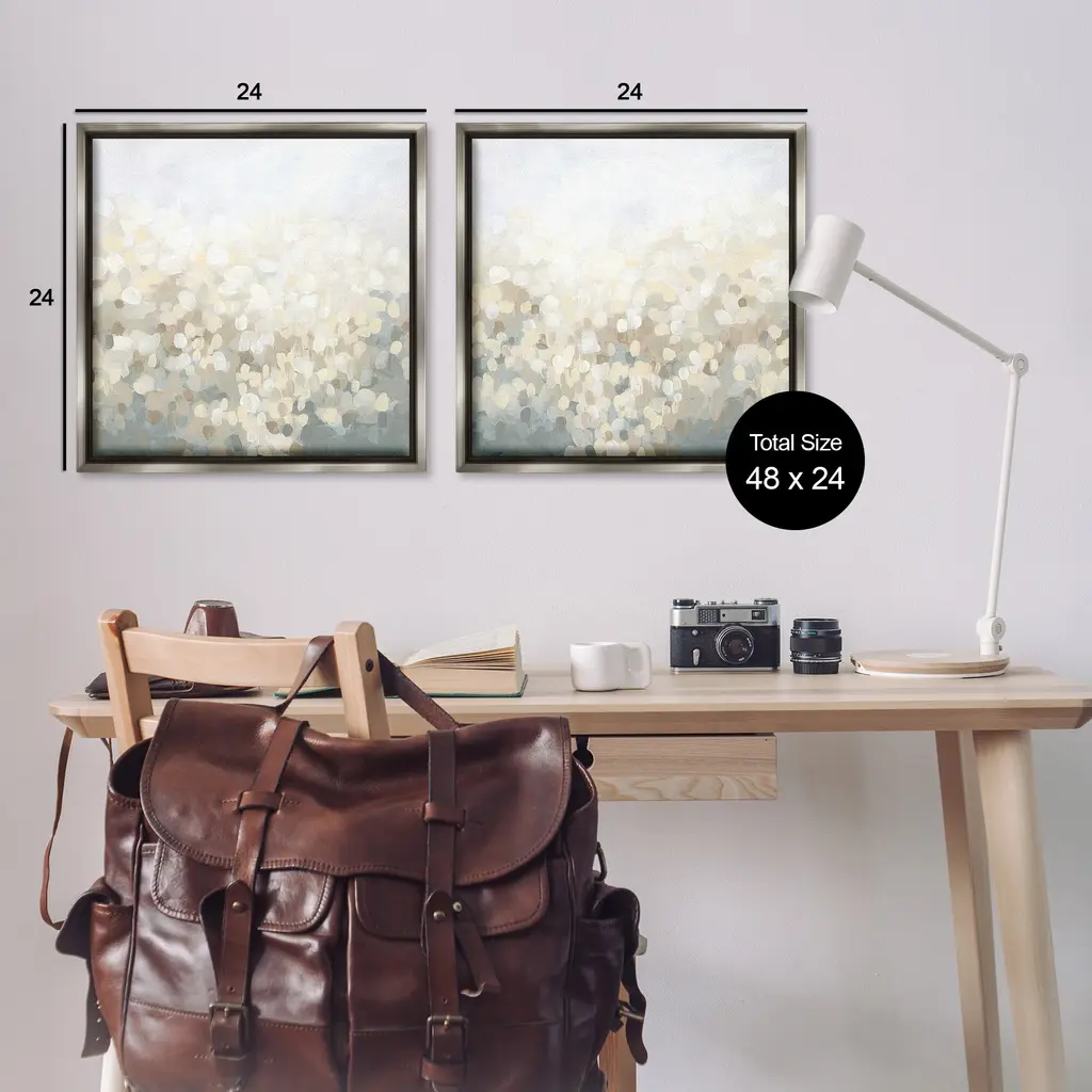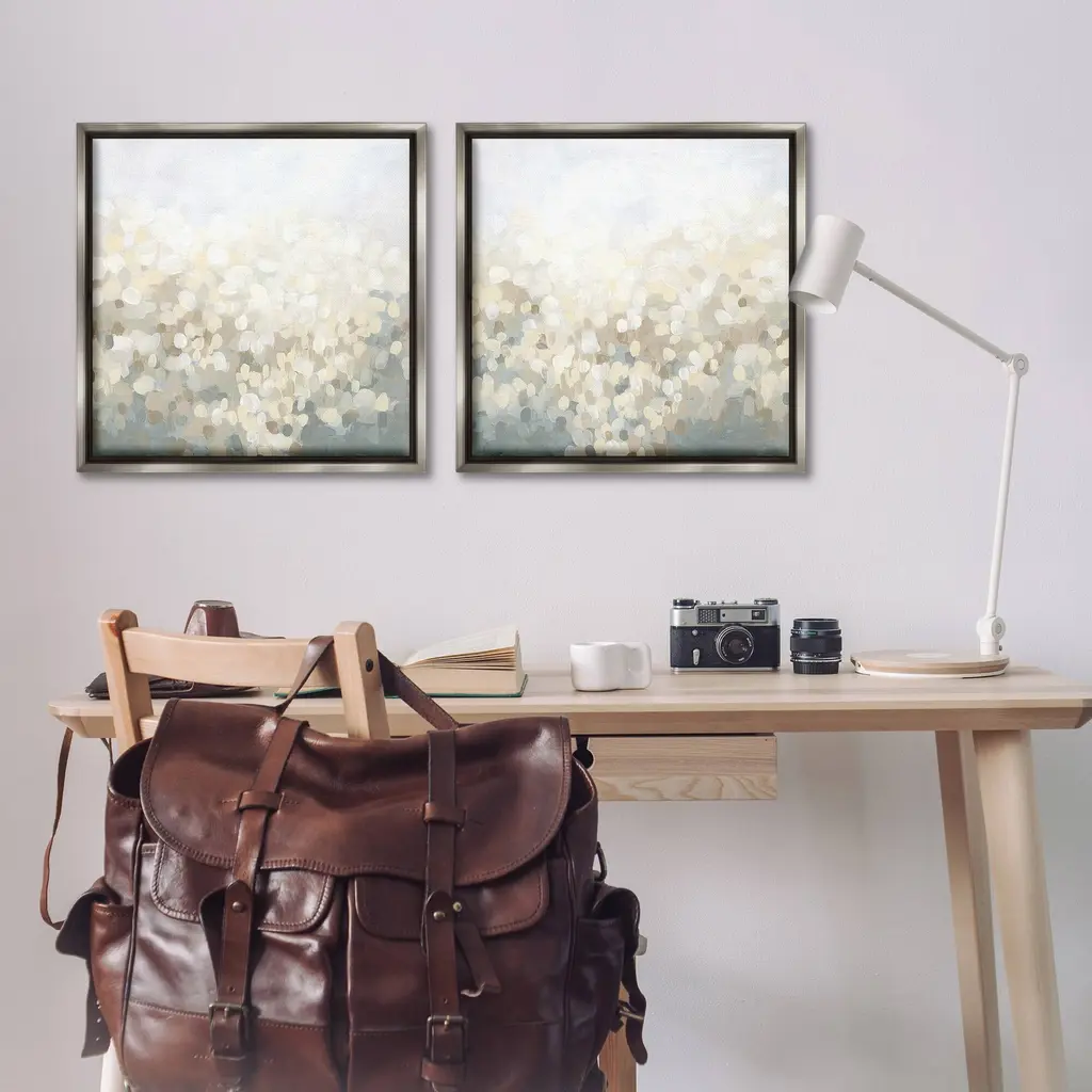 Elevate your home or office to the next level with Stupell Framed Floating Canvas Wall Art. Our premium hand-stretched canvas is mounted securely into a sturdy lightweight frame. The museum-style gap between the wrapped canvas and the box frame gives the illusion of floating artwork. Stupell Wall Art is made in the USA.Features: Dimensions: 2 Piece Set, Each Frame is 18 x 1.7 x 18Two Piece Floating Frame Canvas Products are available as 18"x18" or 25"x25" Panels. All Floating Frame Canvas Products have a 1.7" Depth.Wall Art is Ready to Hang with Hardware Free Hanging. No Installation required. For Easy Set Up Lean or Layer Artwork on Shelf or Against Wall. Artwork is Permently Fixed into the Frame.Our elevated 1.7" Thick Floating Frame is the perfect complement to our canvas style Wall Art. We use only the highest quality inks in house with industry leading printing solutions. Canvas is hand stretched over a durable wood foundation and then mounted securly into a Modern Box Frame. Made in the USA.Artwork Relates To: Abstract, Modern, Landscape, Subtle, SpeckledDesign by June Erica Vess