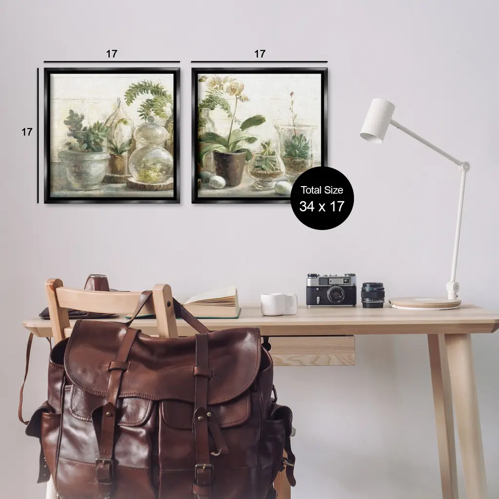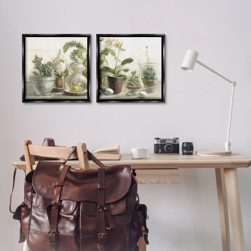 Elevate your home or office to the next level with Stupell Framed Floating Canvas Wall Art. Our premium hand-stretched canvas is mounted securely into a sturdy lightweight frame. The museum-style gap between the wrapped canvas and the box frame gives the illusion of floating artwork. Stupell Wall Art is made in the USA.Features: Dimensions: 2 Piece Set, Each Frame is 18 x 1.7 x 18Two Piece Floating Frame Canvas Products are available as 18"x18" or 25"x25" Panels. All Floating Frame Canvas Products have a 1.7" Depth.Wall Art is Ready to Hang with Hardware Free Hanging. No Installation required. For Easy Set Up Lean or Layer Artwork on Shelf or Against Wall. Artwork is Permently Fixed into the Frame.Our elevated 1.7" Thick Floating Frame is the perfect complement to our canvas style Wall Art. We use only the highest quality inks in house with industry leading printing solutions. Canvas is hand stretched over a durable wood foundation and then mounted securly into a Modern Box Frame. Made in the USA.Artwork Relates To: Plant, Botanical, Planter, Succulent, Still Life, Country, Cottage, RusticDesign by Danhui Nai