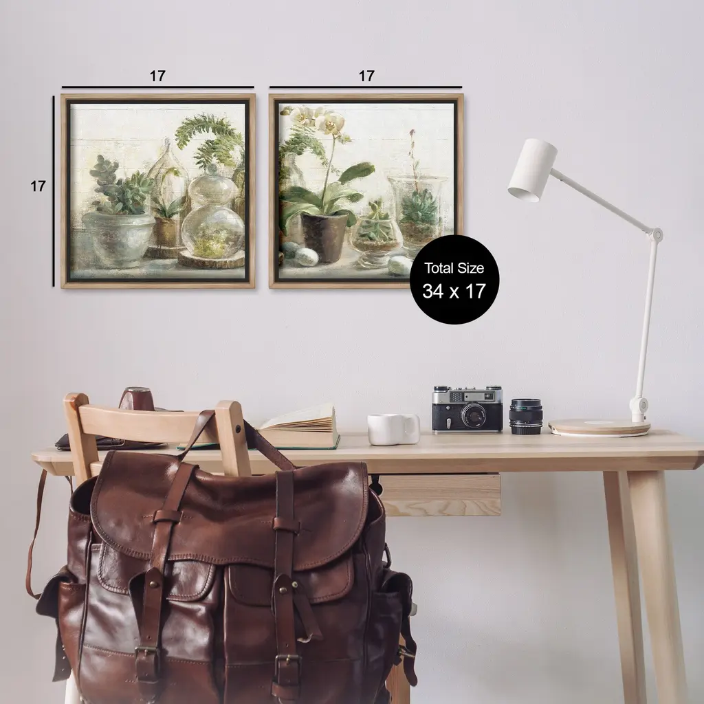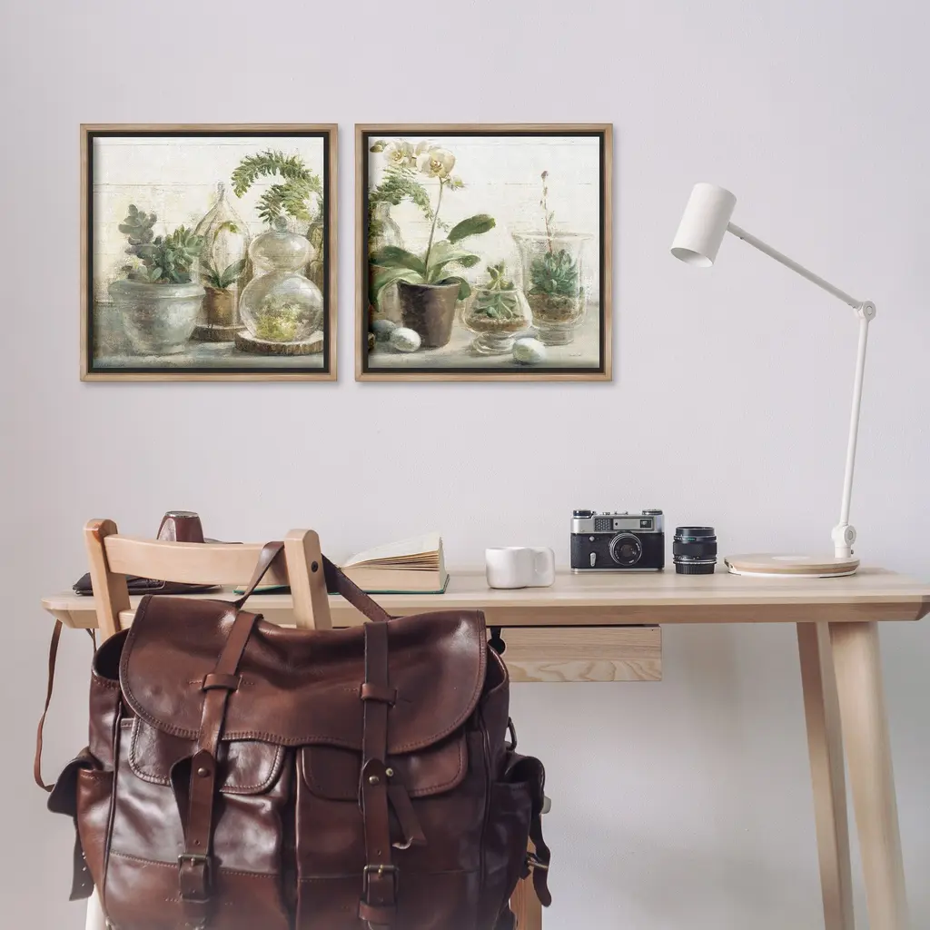 Elevate your home or office to the next level with Stupell Framed Floating Canvas Wall Art. Our premium hand-stretched canvas is mounted securely into a sturdy lightweight frame. The museum-style gap between the wrapped canvas and the box frame gives the illusion of floating artwork. Stupell Wall Art is made in the USA.Features: Dimensions: 2 Piece Set, Each Frame is 18 x 1.7 x 18Two Piece Floating Frame Canvas Products are available as 18"x18" or 25"x25" Panels. All Floating Frame Canvas Products have a 1.7" Depth.Wall Art is Ready to Hang with Hardware Free Hanging. No Installation required. For Easy Set Up Lean or Layer Artwork on Shelf or Against Wall. Artwork is Permently Fixed into the Frame.Our elevated 1.7" Thick Floating Frame is the perfect complement to our canvas style Wall Art. We use only the highest quality inks in house with industry leading printing solutions. Canvas is hand stretched over a durable wood foundation and then mounted securly into a Modern Box Frame. Made in the USA.Artwork Relates To: Plant, Botanical, Planter, Succulent, Still Life, Country, Cottage, RusticDesign by Danhui Nai