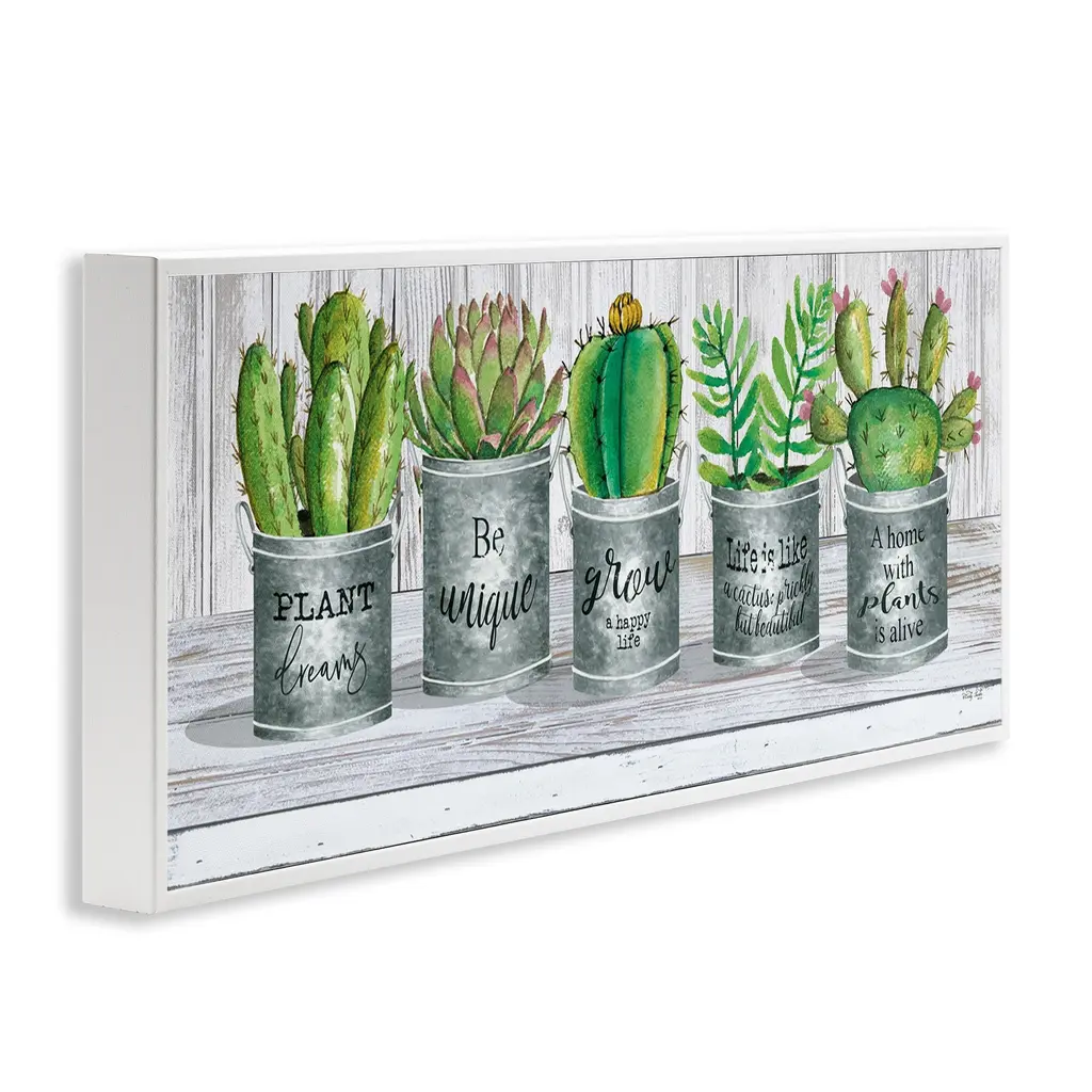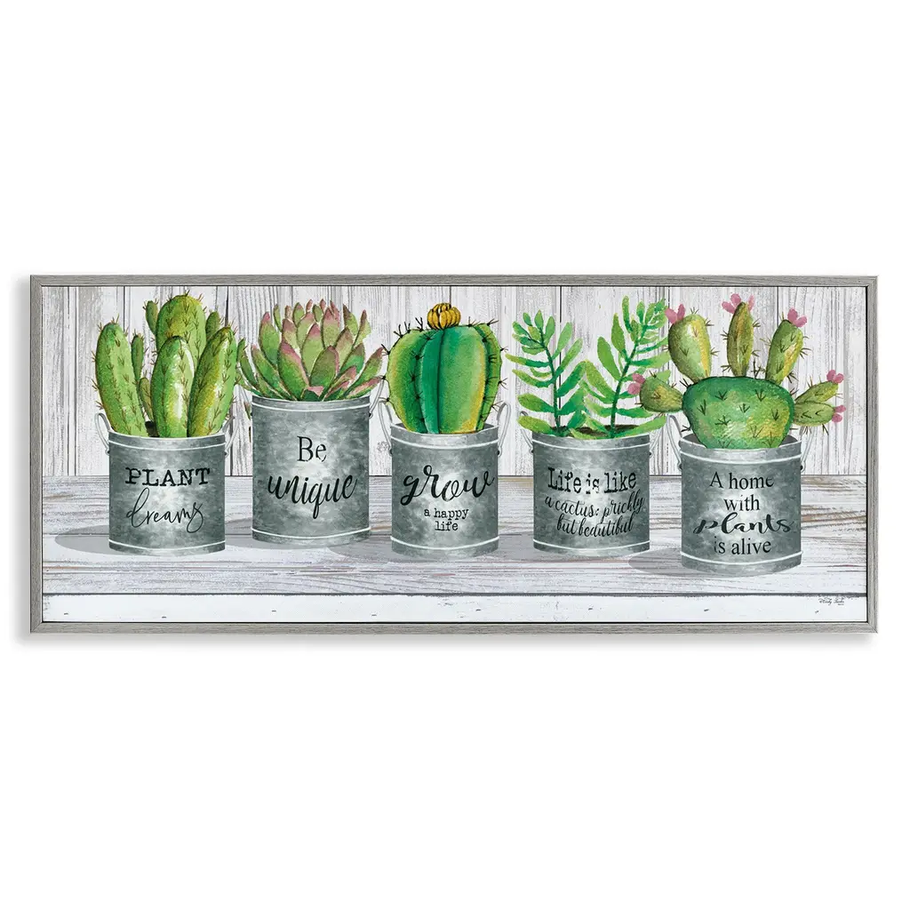 Add dimension to any room with our textured Framed Giclee Artwork. Our framed artwork is securely mounted into a 1.5-inch thick wood grain frame and ready to hang. Frames are available in three alluring styles: black, gray farmhouse and white. In addition, you should check out our oversized options if you want a statement piece. Stupell Wall Art is made in the USA.Features: Dimensions: 24 x 1.5 x 10 FramedFramed Giclee Product Sizes include 24"x10" and 30"x13". All Framed Giclee products have a 1.5" Depth.Wall Art is Ready to Hang with Hardware Free Hanging. No installation required. For Easy Set Up Lean or Layer Artwork on Shelf or Against Wall.Our giclée prints are carefully mounted on a durable MDF backing, and then perfectly finished in a 1.5 inch thick woodgrain frame. Mounted frame colors include black, gray farmhouse and white. Made In USA.Artwork Relates To: Plant, Botanical, Cactus, Country, Rustic, Humor, SucculentDesign by Cindy Jacobs