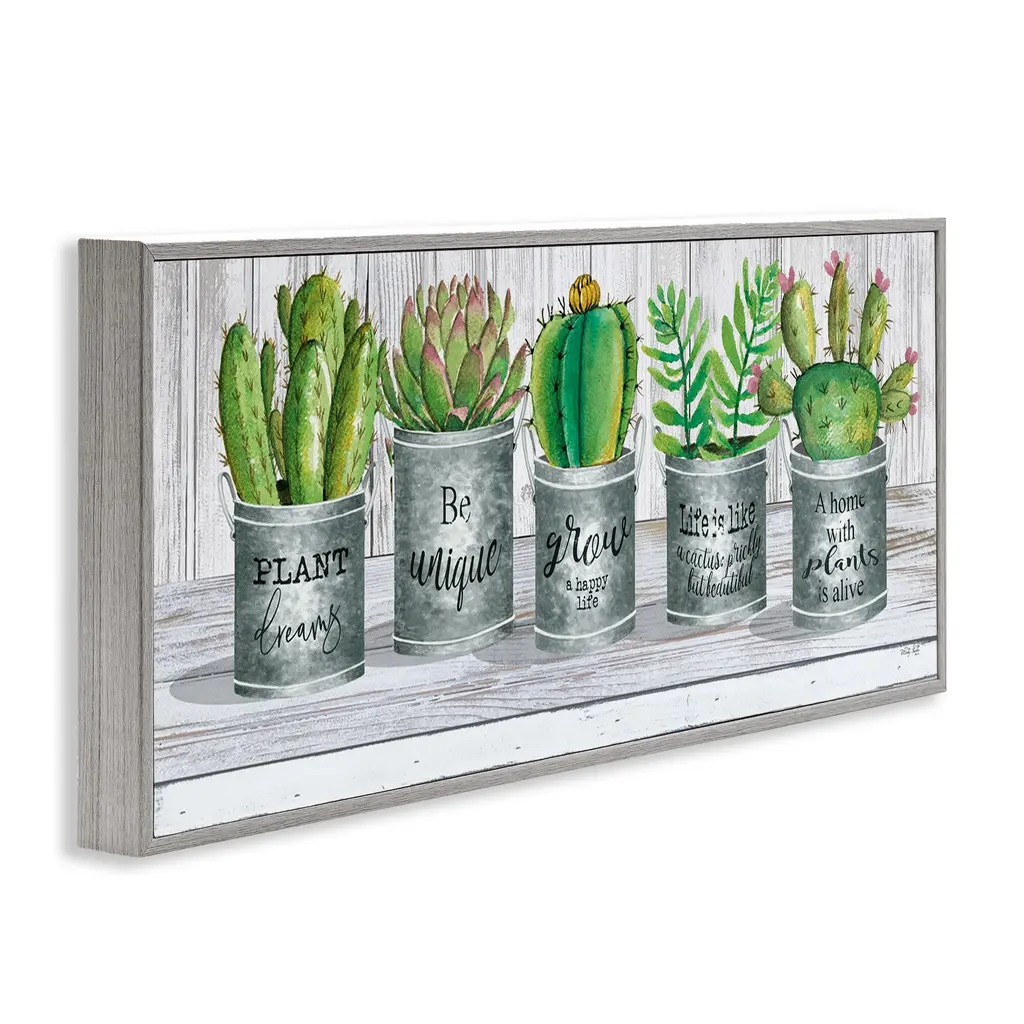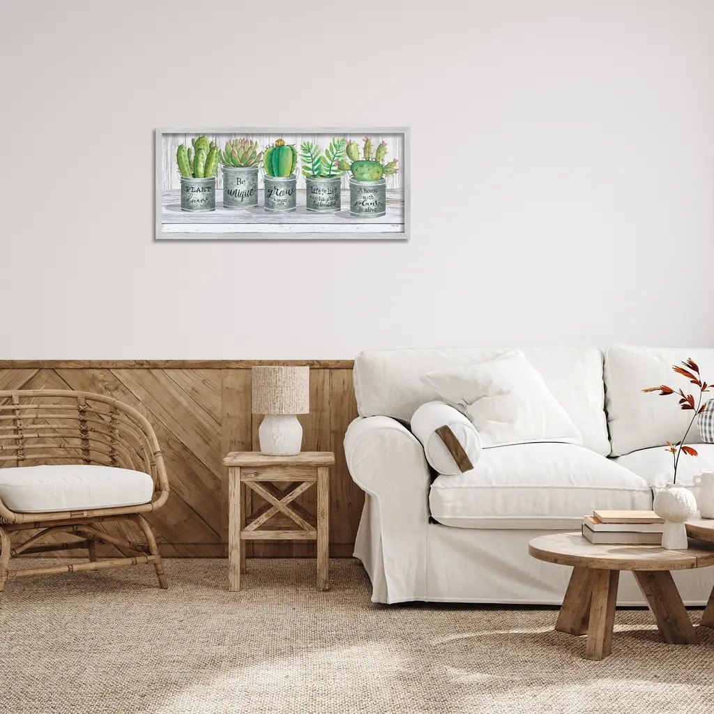 Add dimension to any room with our textured Framed Giclee Artwork. Our framed artwork is securely mounted into a 1.5-inch thick wood grain frame and ready to hang. Frames are available in three alluring styles: black, gray farmhouse and white. In addition, you should check out our oversized options if you want a statement piece. Stupell Wall Art is made in the USA.Features: Dimensions: 24 x 1.5 x 10 FramedFramed Giclee Product Sizes include 24"x10" and 30"x13". All Framed Giclee products have a 1.5" Depth.Wall Art is Ready to Hang with Hardware Free Hanging. No installation required. For Easy Set Up Lean or Layer Artwork on Shelf or Against Wall.Our giclée prints are carefully mounted on a durable MDF backing, and then perfectly finished in a 1.5 inch thick woodgrain frame. Mounted frame colors include black, gray farmhouse and white. Made In USA.Artwork Relates To: Plant, Botanical, Cactus, Country, Rustic, Humor, SucculentDesign by Cindy Jacobs