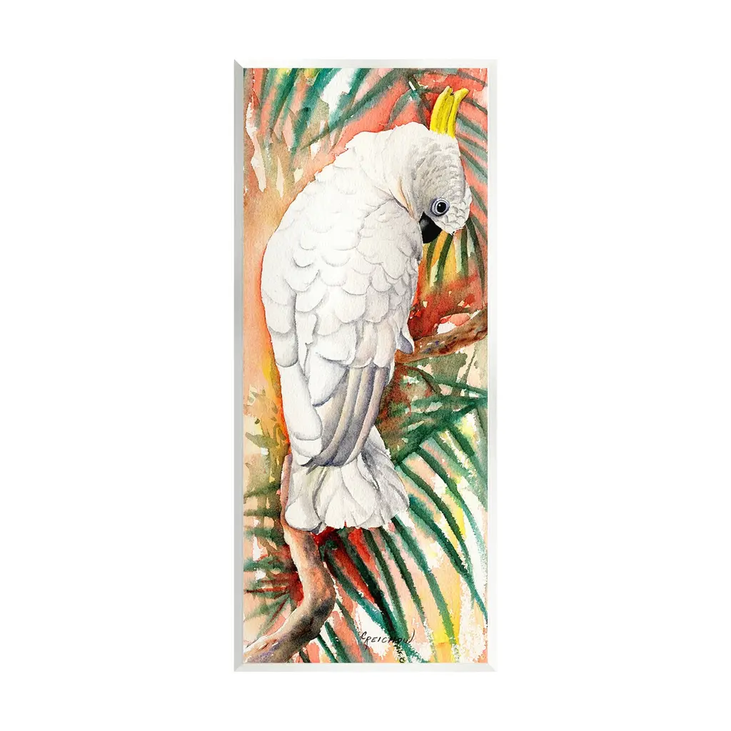 Our wall plaques start as high-quality lithograph prints mounted on durable 0.5-inch thick MDF wood. Each piece is hand finished and comes with a fresh layer of white foil on the sides to give it a crisp, clean look. Plaques arrive ready to hang without installation and come with removable plastic corners to keep them from damage in transit. Stupell Wall Art is made in the USA.Features: Dimensions: 7 x 0.5 x 17 InchesWall Art is Ready to Hang with Hardware Free Hanging. No installation required. For Easy Set Up Lean or Layer Artwork on Shelf or Against Wall.All of our wall plaques start off as high quality lithograph prints that are then mounted on durable 0.5 inch thick MDF wood. Each piece is hand finished and comes with a fresh layer of foil on the sides to give it a crisp clean look. Made In USA.Artwork Relates To: Animal, Bird, Parrot, Cockatoo, Nature, Leaf, PlantDesign by Christine Reichow