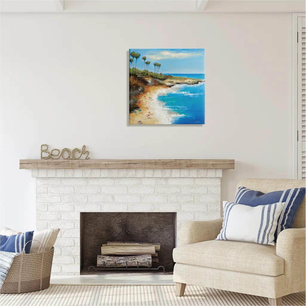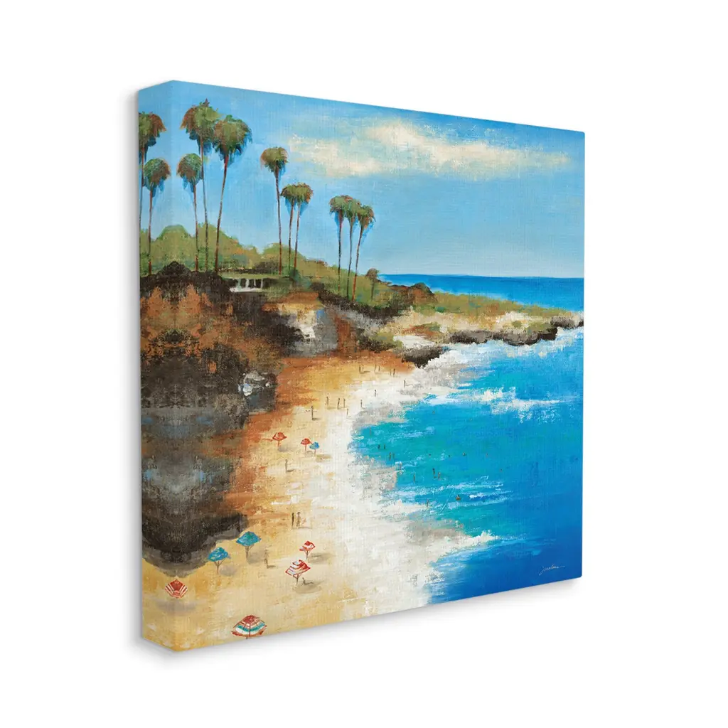We create our stretched canvas to the highest standards. Using only the highest quality inks and canvas on Mimaki printers, we hand-cut and stretch each piece over a 1.5-inch thick wooden frame for hanging. As a result, the art comes ready to hang on the sturdy ledge with no installation required. Stupell Wall Art is made in the USA.Features: Dimensions: 17 x 1.5 x 17 InchesStretched Canvas Sizes Include Standard: 17 x 1.5 x 17 Large: 24 x 1.5 x 24 X-Large: 30 x 1.5 x 30 Oversized: 36 x 1.5 x 36Wall Art is Ready to Hang with Hardware Free Hanging. No installation required. For Easy Set Up Lean or Layer Artwork on Shelf or Against Wall.Our stretched canvas is created with the highest standards. We use only the highest quality inks and canvas on our in house Mimaki printers, and then hand cut and stretch each piece over a 1.5 inch thick wooden frame for hanging. Made In USA.Artwork Relates To: Painting, Nature, Sea, Water, Beach, Coast, Shoreline, Landscape, Scenery, Summer, Tropical, Palm TreeDesign by Liz Jardine
