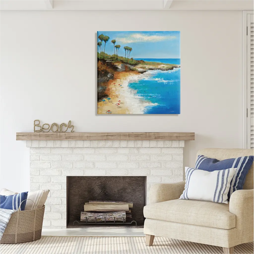 We create our stretched canvas to the highest standards. Using only the highest quality inks and canvas on Mimaki printers, we hand-cut and stretch each piece over a 1.5-inch thick wooden frame for hanging. As a result, the art comes ready to hang on the sturdy ledge with no installation required. Stupell Wall Art is made in the USA.Features: Dimensions: 17 x 1.5 x 17 InchesStretched Canvas Sizes Include Standard: 17 x 1.5 x 17 Large: 24 x 1.5 x 24 X-Large: 30 x 1.5 x 30 Oversized: 36 x 1.5 x 36Wall Art is Ready to Hang with Hardware Free Hanging. No installation required. For Easy Set Up Lean or Layer Artwork on Shelf or Against Wall.Our stretched canvas is created with the highest standards. We use only the highest quality inks and canvas on our in house Mimaki printers, and then hand cut and stretch each piece over a 1.5 inch thick wooden frame for hanging. Made In USA.Artwork Relates To: Painting, Nature, Sea, Water, Beach, Coast, Shoreline, Landscape, Scenery, Summer, Tropical, Palm TreeDesign by Liz Jardine