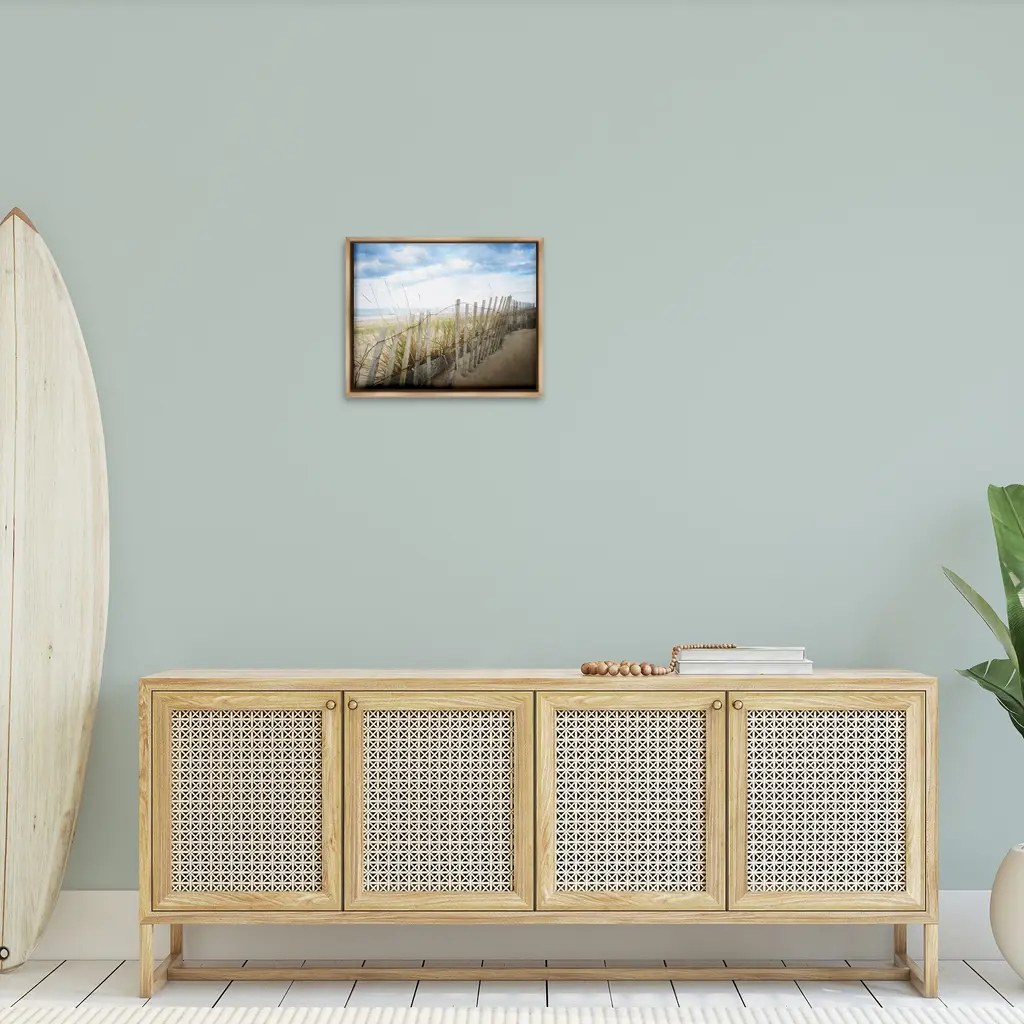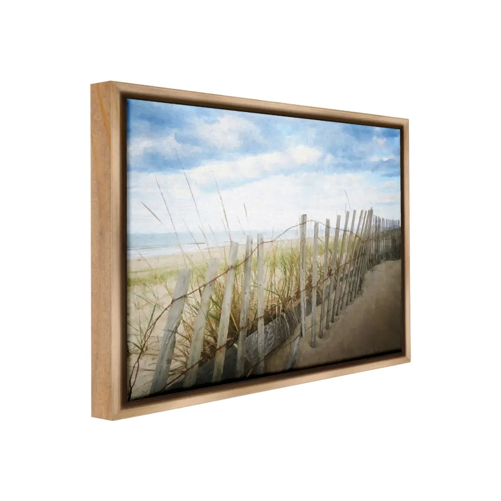 Elevate your home or office to the next level with Stupell Framed Floating Canvas Wall Art. Our premium hand-stretched canvas is mounted securely into a sturdy lightweight frame. The museum-style gap between the wrapped canvas and the box frame gives the illusion of floating artwork. Stupell Wall Art is made in the USA.Features: Dimensions: 21 x 1.7 x 17 Frame, 20 x 1.5 x 16 Canvas ArtFloating Frame Canvas Products are available in sizes 21"x17" and 31"x25". All Floating Frame Canvas Products have a 1.7" Depth.Wall Art is Ready to Hang with Hardware Free Hanging. No Installation required. For Easy Set Up Lean or Layer Artwork on Shelf or Against Wall. Artwork is Permently Fixed into the Frame.Our elevated 1.7" Thick Floating Frame is the perfect complement to our canvas style Wall Art. We use only the highest quality inks in house with industry leading printing solutions. Canvas is hand stretched over a durable wood foundation and then mounted securly into a Modern Box Frame. Made in the USA.Artwork Relates To: Beach, Ocean, Sea, Coast, Nautical, Fence, Path, Sand, NatureDesign by GraffiTee Studios