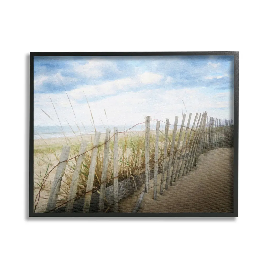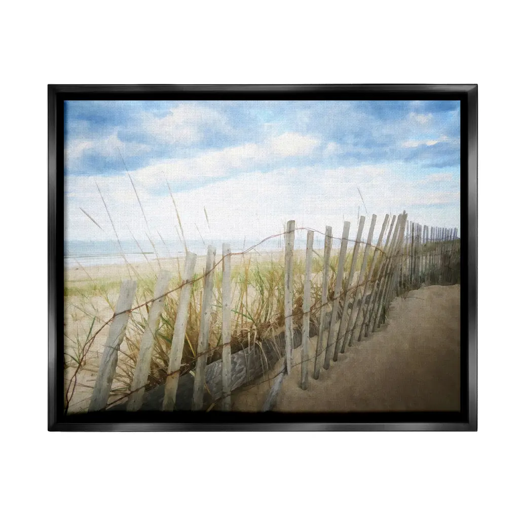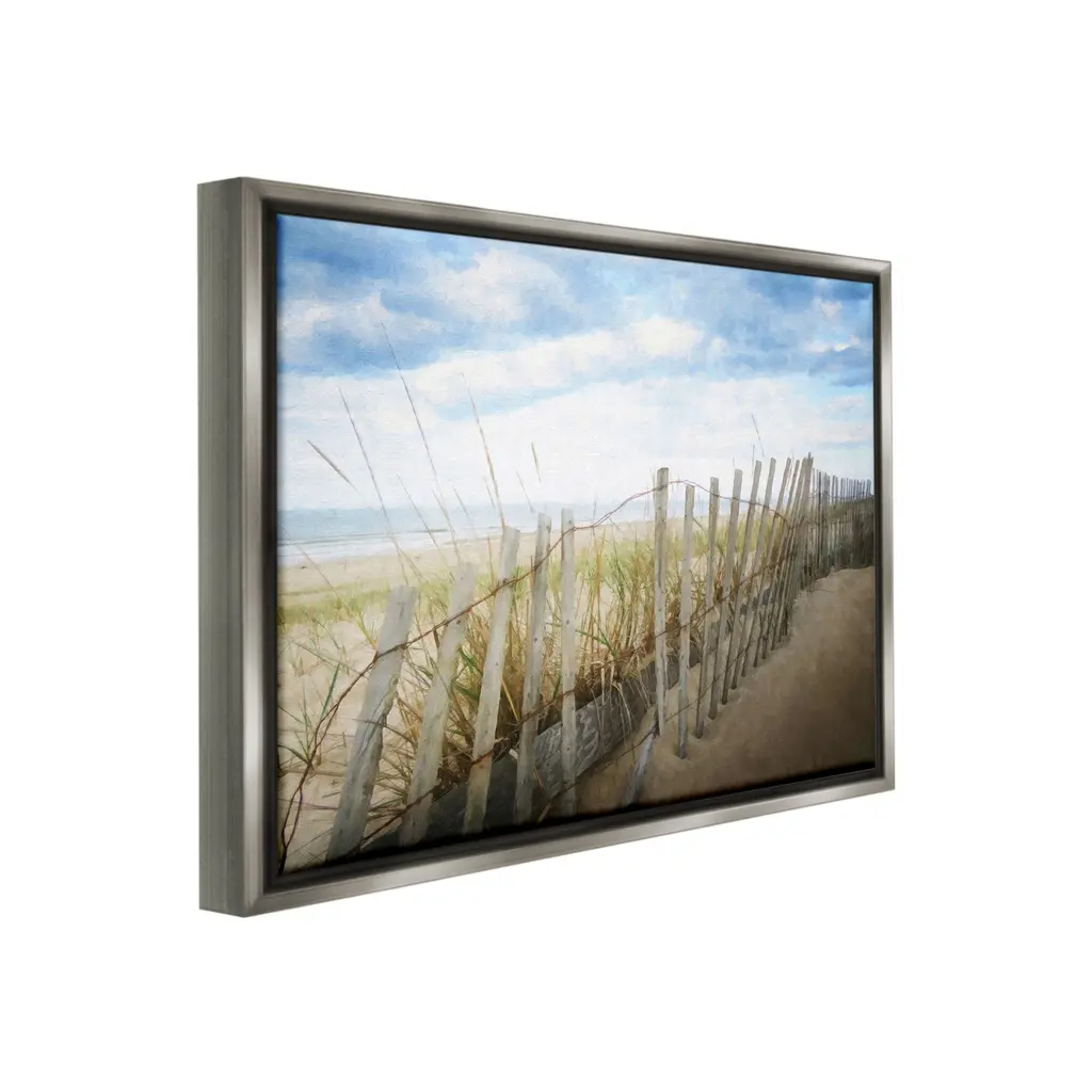Elevate your home or office to the next level with Stupell Framed Floating Canvas Wall Art. Our premium hand-stretched canvas is mounted securely into a sturdy lightweight frame. The museum-style gap between the wrapped canvas and the box frame gives the illusion of floating artwork. Stupell Wall Art is made in the USA.Features: Dimensions: 21 x 1.7 x 17 Frame, 20 x 1.5 x 16 Canvas ArtFloating Frame Canvas Products are available in sizes 21"x17" and 31"x25". All Floating Frame Canvas Products have a 1.7" Depth.Wall Art is Ready to Hang with Hardware Free Hanging. No Installation required. For Easy Set Up Lean or Layer Artwork on Shelf or Against Wall. Artwork is Permently Fixed into the Frame.Our elevated 1.7" Thick Floating Frame is the perfect complement to our canvas style Wall Art. We use only the highest quality inks in house with industry leading printing solutions. Canvas is hand stretched over a durable wood foundation and then mounted securly into a Modern Box Frame. Made in the USA.Artwork Relates To: Beach, Ocean, Sea, Coast, Nautical, Fence, Path, Sand, NatureDesign by GraffiTee Studios