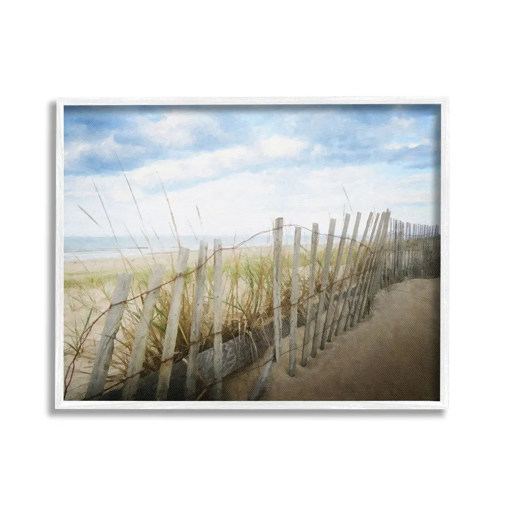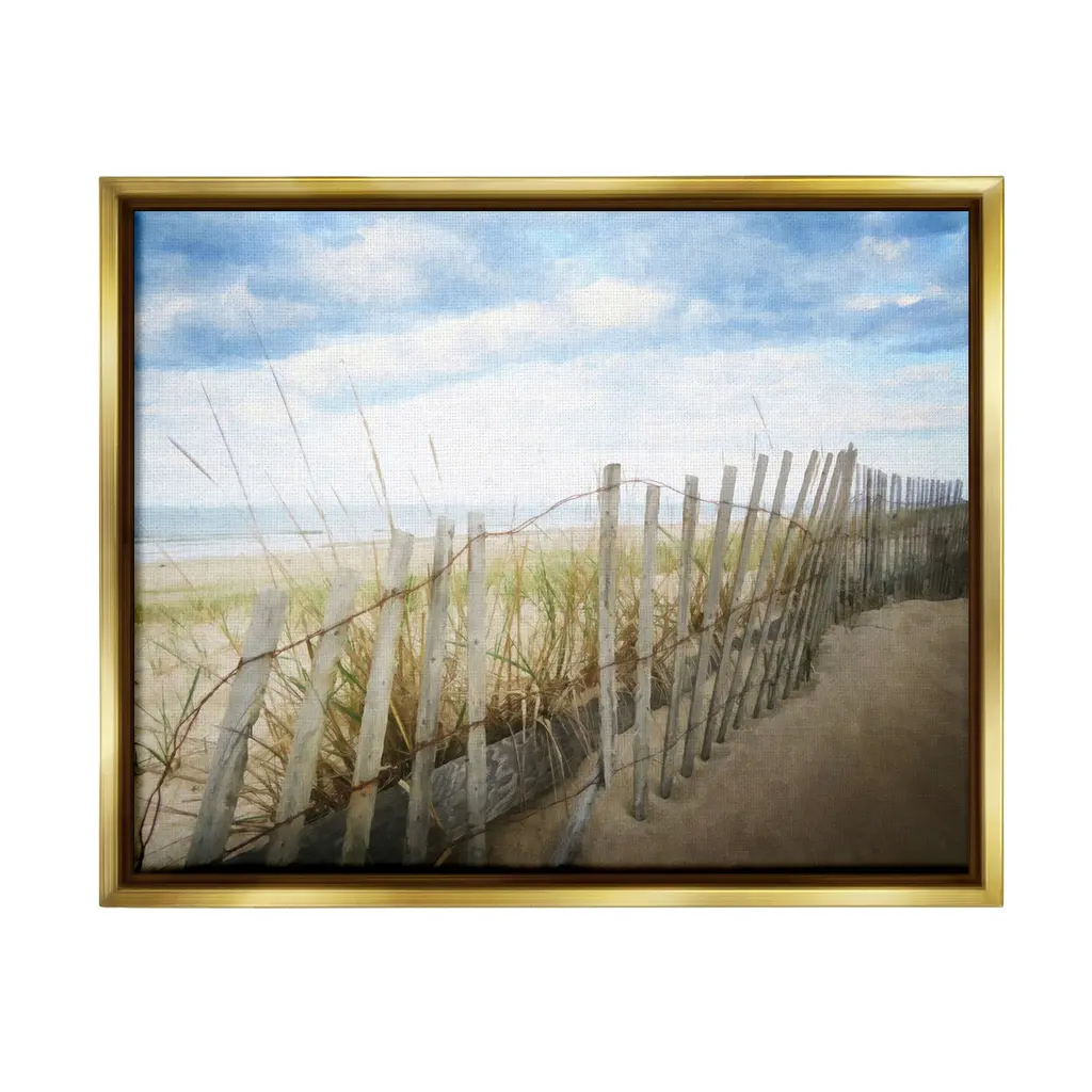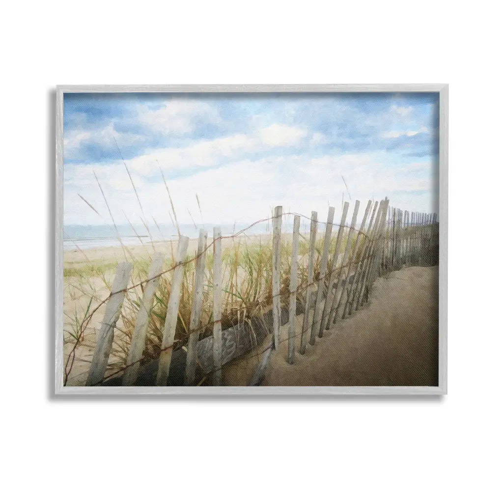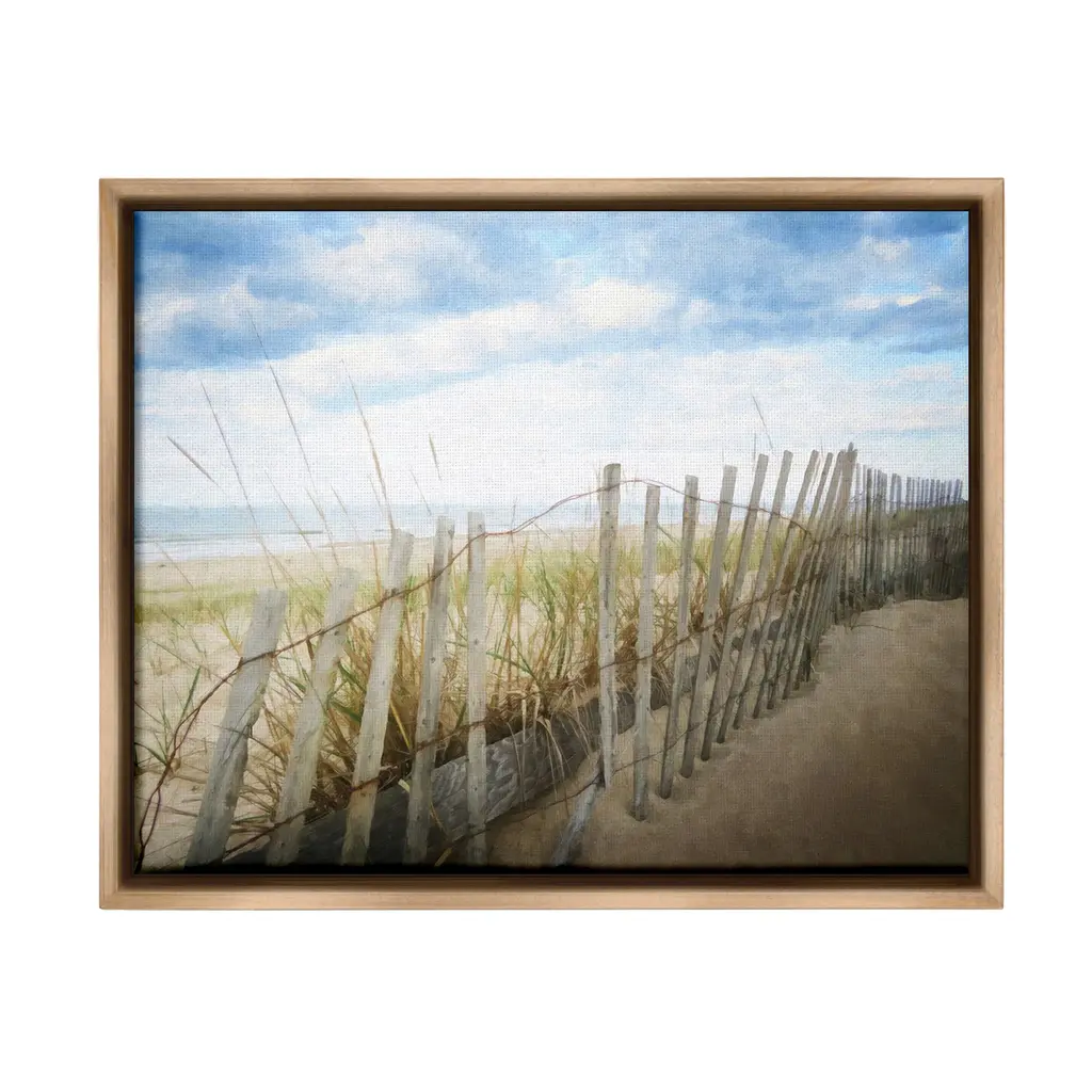 Elevate your home or office to the next level with Stupell Framed Floating Canvas Wall Art. Our premium hand-stretched canvas is mounted securely into a sturdy lightweight frame. The museum-style gap between the wrapped canvas and the box frame gives the illusion of floating artwork. Stupell Wall Art is made in the USA.Features: Dimensions: 21 x 1.7 x 17 Frame, 20 x 1.5 x 16 Canvas ArtFloating Frame Canvas Products are available in sizes 21"x17" and 31"x25". All Floating Frame Canvas Products have a 1.7" Depth.Wall Art is Ready to Hang with Hardware Free Hanging. No Installation required. For Easy Set Up Lean or Layer Artwork on Shelf or Against Wall. Artwork is Permently Fixed into the Frame.Our elevated 1.7" Thick Floating Frame is the perfect complement to our canvas style Wall Art. We use only the highest quality inks in house with industry leading printing solutions. Canvas is hand stretched over a durable wood foundation and then mounted securly into a Modern Box Frame. Made in the USA.Artwork Relates To: Beach, Ocean, Sea, Coast, Nautical, Fence, Path, Sand, NatureDesign by GraffiTee Studios