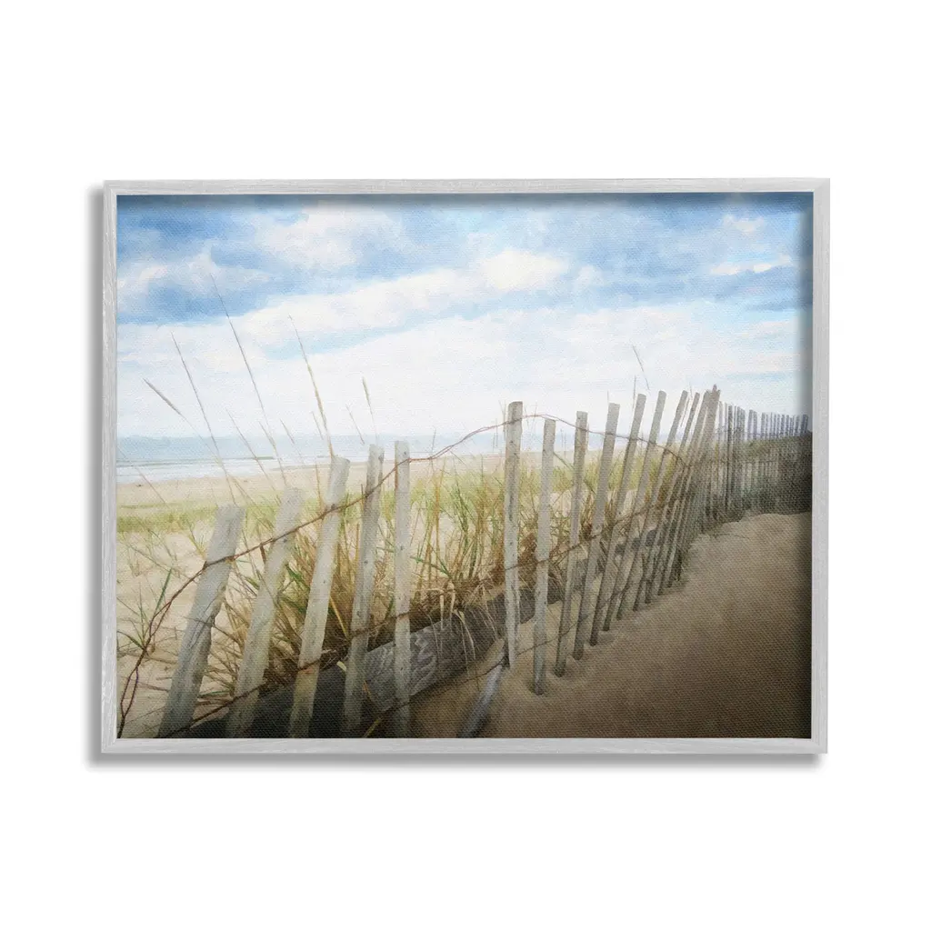Add dimension to any room with our textured Framed Giclee Artwork. Our framed artwork is securely mounted into a 1.5-inch thick wood grain frame and ready to hang. Frames are available in three alluring styles: black, gray farmhouse and white. In addition, you should check out our oversized options if you want a statement piece. Stupell Wall Art is made in the USA.Features: Dimensions: 14 x 1.5 x 11 FramedFramed Giclee Products are available in the sizes 14"x11", 20"x16" or 30"x24". All Framed Giclee Products have a 1.5" Depth. Wall Art is Ready to Hang with Hardware Free Hanging. No installation required. For Easy Set Up Lean or Layer Artwork on Shelf or Against Wall.Our giclée prints are carefully mounted on a durable MDF backing, and then perfectly finished in a 1.5 inch thick woodgrain frame. Mounted frame colors include black, gray farmhouse and white. Made In USA.Artwork Relates To: Beach, Ocean, Sea, Coast, Nautical, Fence, Path, Sand, NatureDesign by GraffiTee Studios