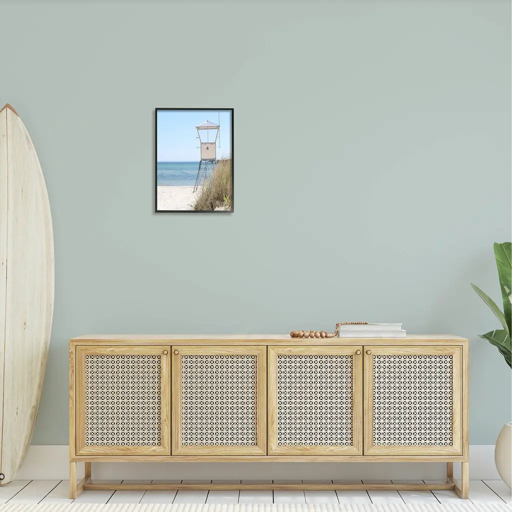 Our Framed Giclee Wall Art adds a touch of class to any space in your home or office. Frames are available in three alluring styles: black, gray farmhouse and white. Our textured artwork will add more depth and dimension to any space. Each piece is mounted with a 1.5 inch thick wood grain frame that is ready to hang! Looking for a statement piece? We have oversized artwork available.Features: Dimensions: 11 x 1.5 x 14 FramedFramed Giclee Sizes Include Standard: 11 x 1.5 x 14 Large: 16 x 1.5 x 20 Oversized: 24 x 1.5 x 30Wall Art is Ready to Hang - No Installation or Hardware Needed. For Easy Set Up Lean or Layer Artwork on Shelf or Against Wall.Our giclée prints are carefully mounted on a durable MDF backing, and then perfectly finished in a 1.5 inch thick woodgrain frame. Mounted frame colors include black, gray farmhouse and white. Made In USA.Artwork Relates To: Outdoors, Building, Sky, Nature, Beach, Sea, Water, Shoreline, Coast, Scenery, Beach HutDesign by Kim Allen