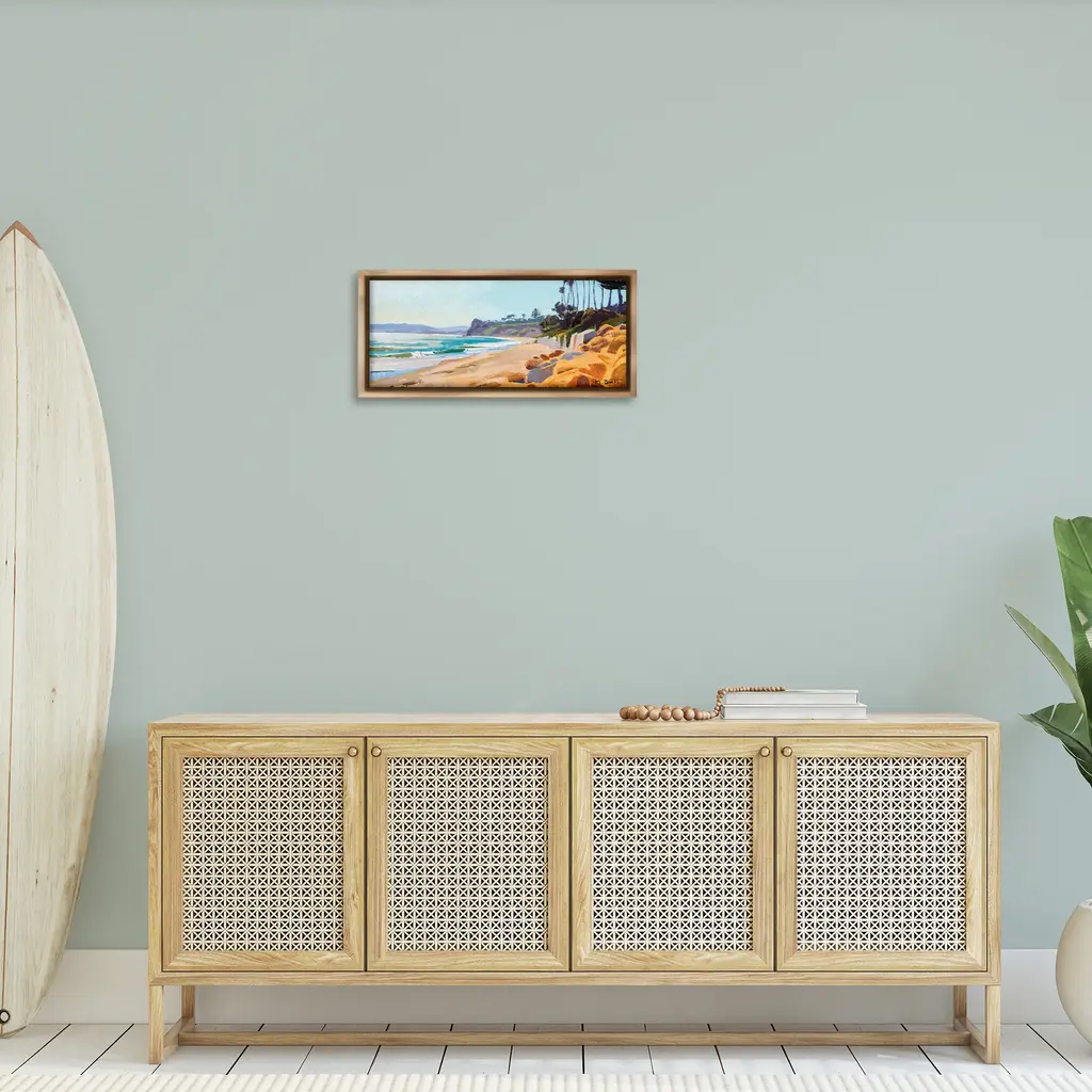 Elevate your home or office to the next level with Stupell Framed Floating Canvas Wall Art. Our premium hand-stretched canvas is mounted securely into a sturdy lightweight frame. The museum-style gap between the wrapped canvas and the box frame gives the illusion of floating artwork. Stupell Wall Art is made in the USA.Features: Dimensions: 25 x 1.7 x 11 Frame, 24 x 1.5 x 10 Canvas ArtFloating Frame Canvas Products are available in sizes 25"x11" and 31"x14". All Floating Frame Canvas Products have a 1.7" Depth.Wall Art is Ready to Hang with Hardware Free Hanging. No Installation required. For Easy Set Up Lean or Layer Artwork on Shelf or Against Wall. Artwork is Permently Fixed into the Frame.Our elevated 1.7" Thick Floating Frame is the perfect complement to our canvas style Wall Art. We use only the highest quality inks in house with industry leading printing solutions. Canvas is hand stretched over a durable wood foundation and then mounted securly into a Modern Box Frame. Made in the USA.Artwork Relates To: Nautical, Beach, Shore, Landscape, Ocean, CoastalDesign by Marcia Burtt