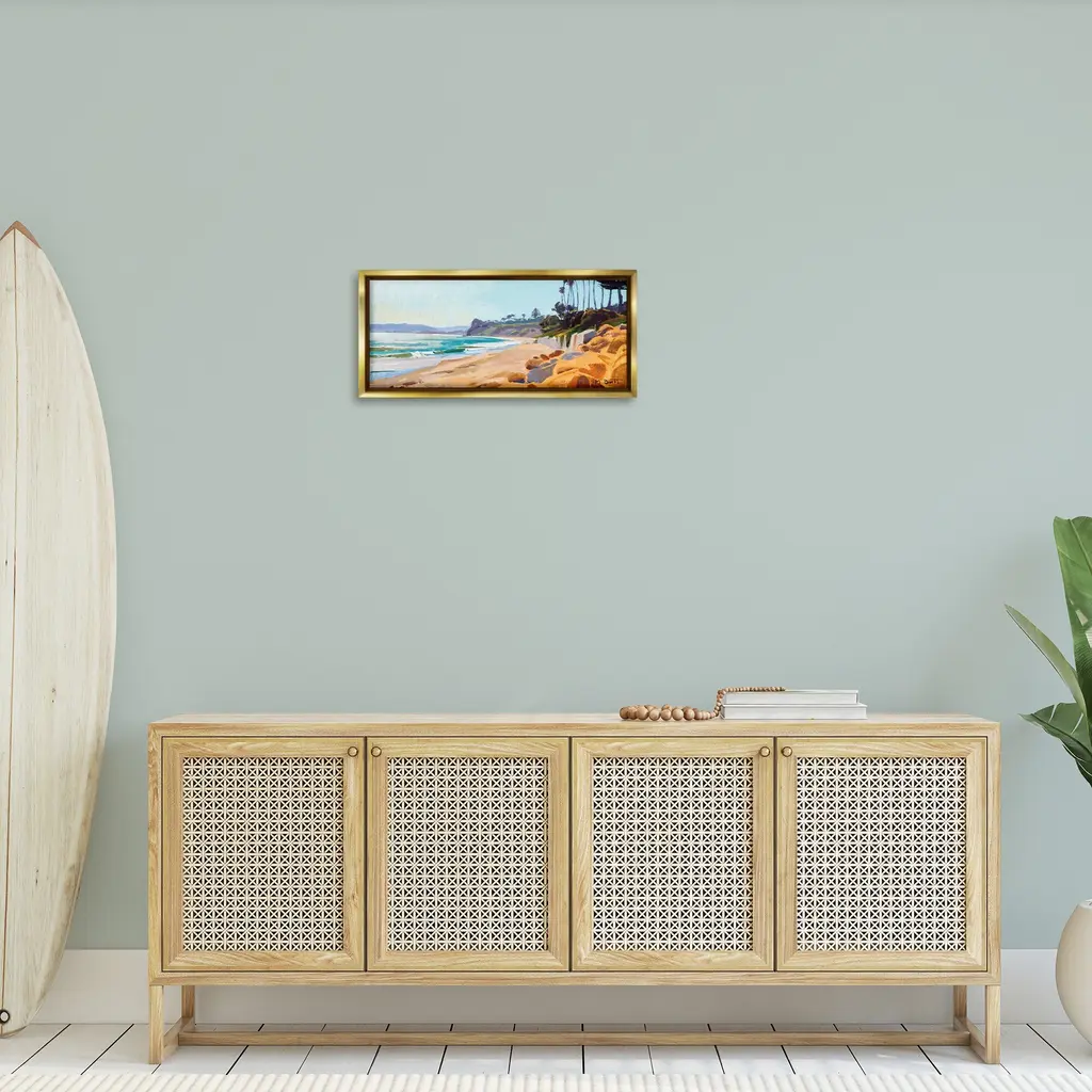 Stupell Summer Beach Landscape Painting Framed Floater Canvas Wall Art Design By Marcia Burtt - 25 X 11 - Gold