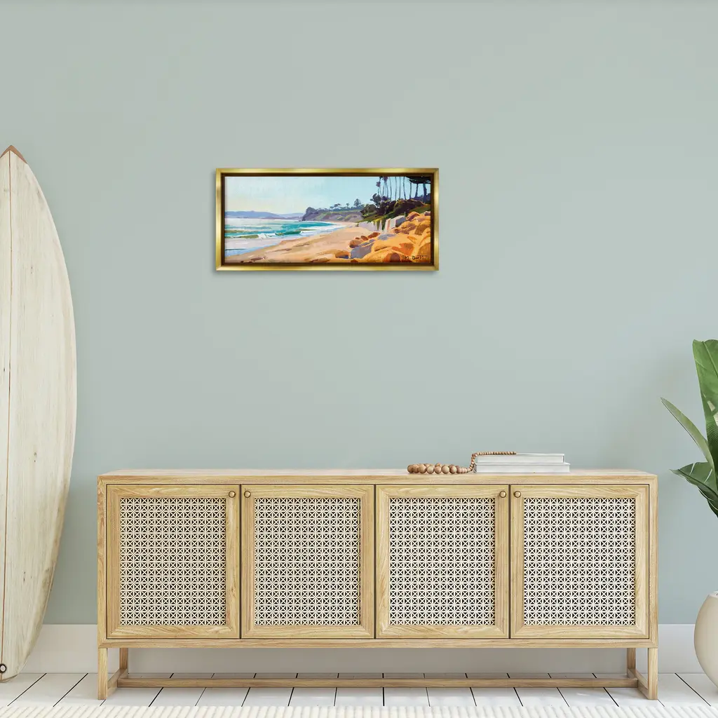 Elevate your home or office to the next level with Stupell Framed Floating Canvas Wall Art. Our premium hand-stretched canvas is mounted securely into a sturdy lightweight frame. The museum-style gap between the wrapped canvas and the box frame gives the illusion of floating artwork. Stupell Wall Art is made in the USA.Features: Dimensions: 25 x 1.7 x 11 Frame, 24 x 1.5 x 10 Canvas ArtFloating Frame Canvas Products are available in sizes 25"x11" and 31"x14". All Floating Frame Canvas Products have a 1.7" Depth.Wall Art is Ready to Hang with Hardware Free Hanging. No Installation required. For Easy Set Up Lean or Layer Artwork on Shelf or Against Wall. Artwork is Permently Fixed into the Frame.Our elevated 1.7" Thick Floating Frame is the perfect complement to our canvas style Wall Art. We use only the highest quality inks in house with industry leading printing solutions. Canvas is hand stretched over a durable wood foundation and then mounted securly into a Modern Box Frame. Made in the USA.Artwork Relates To: Nautical, Beach, Shore, Landscape, Ocean, CoastalDesign by Marcia Burtt