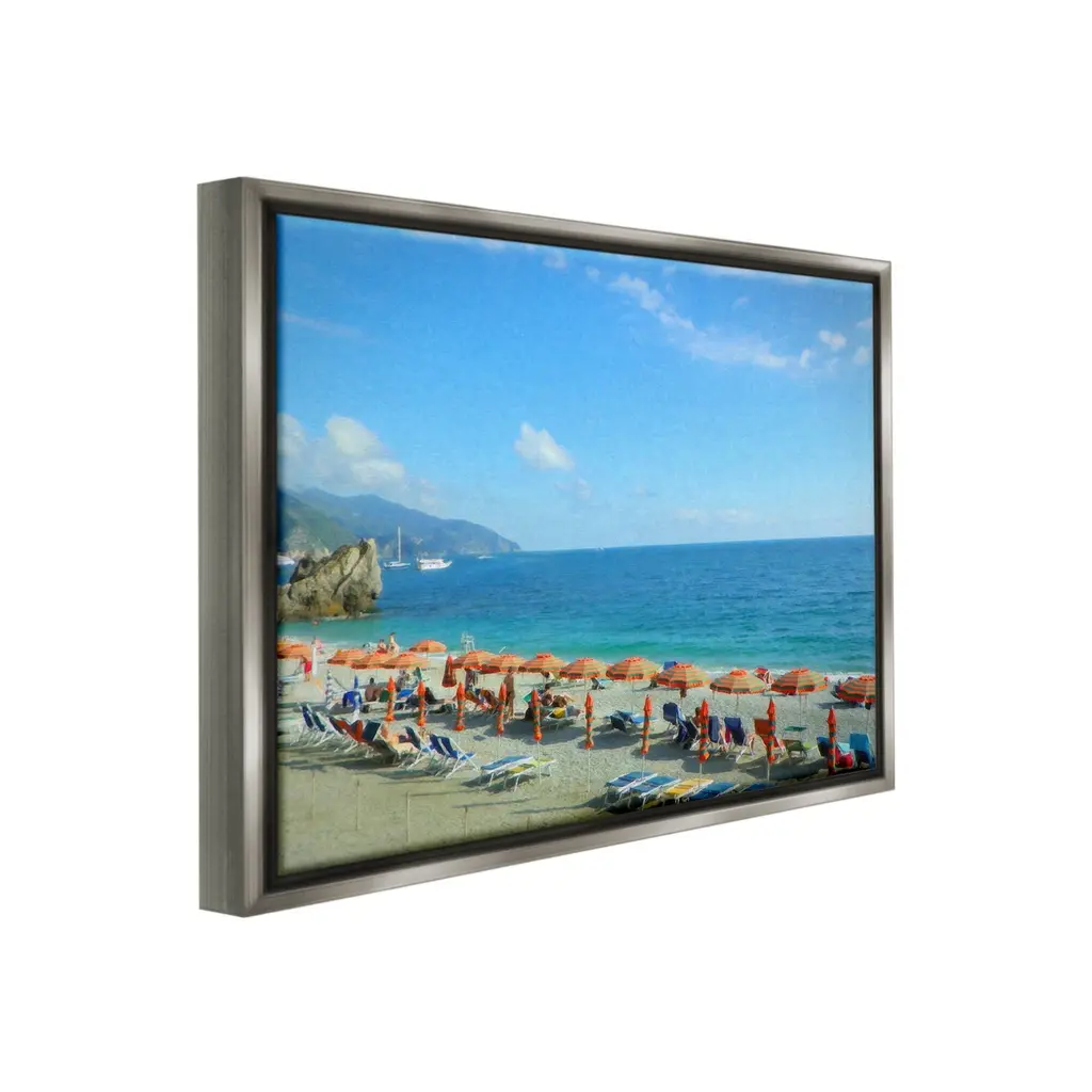 Elevate your home or office to the next level with Stupell Framed Floating Canvas Wall Art. Our premium hand-stretched canvas is mounted securely into a sturdy lightweight frame. The museum-style gap between the wrapped canvas and the box frame gives the illusion of floating artwork. Stupell Wall Art is made in the USA.Features: Dimensions: 21 x 1.7 x 17 Frame, 20 x 1.5 x 16 Canvas ArtFloating Frame Canvas Products are available in sizes 21"x17" and 31"x25". All Floating Frame Canvas Products have a 1.7" Depth.Wall Art is Ready to Hang with Hardware Free Hanging. No Installation required. For Easy Set Up Lean or Layer Artwork on Shelf or Against Wall. Artwork is Permently Fixed into the Frame.Our elevated 1.7" Thick Floating Frame is the perfect complement to our canvas style Wall Art. We use only the highest quality inks in house with industry leading printing solutions. Canvas is hand stretched over a durable wood foundation and then mounted securly into a Modern Box Frame. Made in the USA.Artwork Relates To: Summer, Beach, Coast, Sea, Shoreline, Water, Scenery, Horizon, Waterfront, Waves, People, Vacation, UmbrellaDesign by GraffiTee Studios