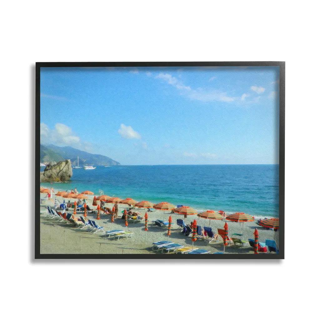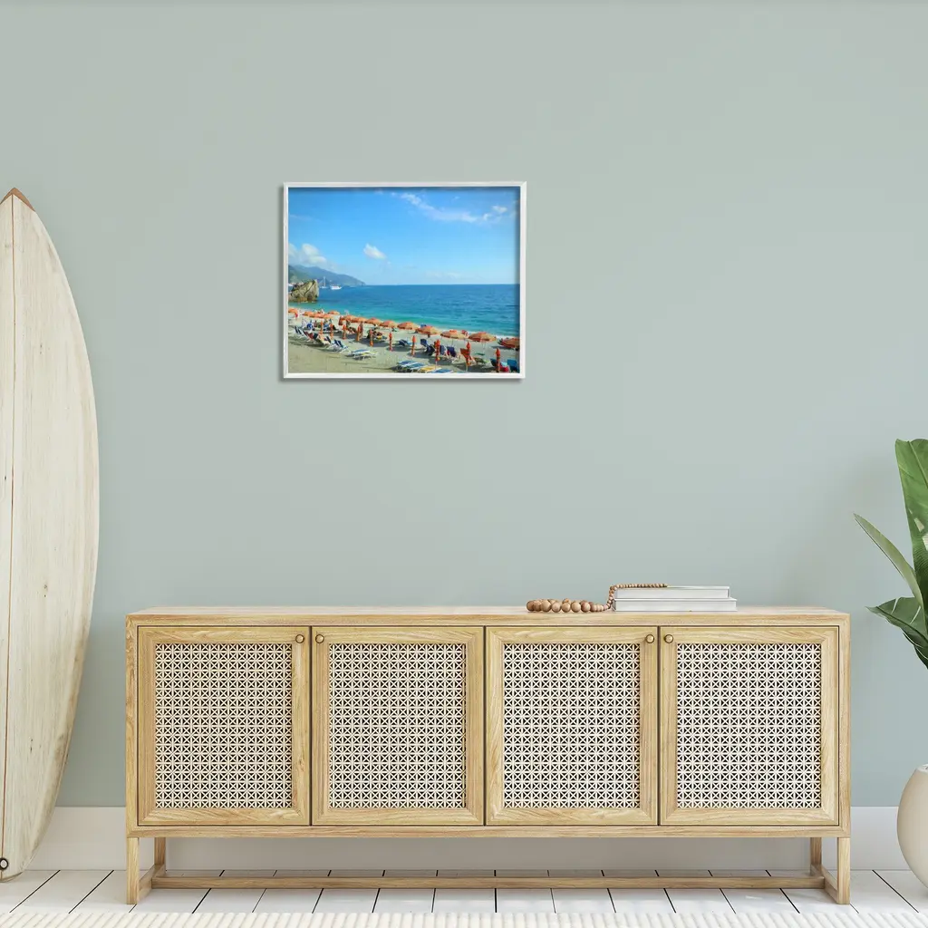 Add dimension to any room with our textured Framed Giclee Artwork. Our framed artwork is securely mounted into a 1.5-inch thick wood grain frame and ready to hang. Frames are available in three alluring styles: black, gray farmhouse and white. In addition, you should check out our oversized options if you want a statement piece. Stupell Wall Art is made in the USA.Features: Dimensions: 14 x 1.5 x 11 FramedFramed Giclee Products are available in the sizes 14"x11", 20"x16" or 30"x24". All Framed Giclee Products have a 1.5" Depth. Wall Art is Ready to Hang with Hardware Free Hanging. No installation required. For Easy Set Up Lean or Layer Artwork on Shelf or Against Wall.Our giclée prints are carefully mounted on a durable MDF backing, and then perfectly finished in a 1.5 inch thick woodgrain frame. Mounted frame colors include black, gray farmhouse and white. Made In USA.Artwork Relates To: Summer, Beach, Coast, Sea, Shoreline, Water, Scenery, Horizon, Waterfront, Waves, People, Vacation, UmbrellaDesign by GraffiTee Studios